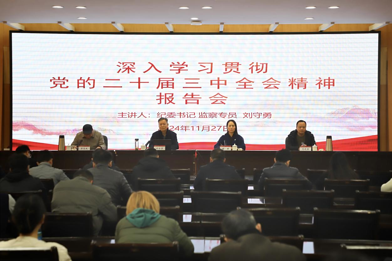 1宣讲现场2宣讲现场本网讯(通讯员李豫杭图/文)为深入学习贯彻党的二十届三中全会精神,11月27日,校纪委书记、监察专员刘守勇作党的二十届三中全会精神宣讲报告。校纪委、音乐学院、人工智能与软件工程学院领导班子、全体老师及学生代表参加报告会。报告会由音乐学院党委书记黄爱民主持。刘守勇在报告中概括介绍了党的二十届三中全会的基本情况及产生的影响,深入讲解了习近平总书记在全会上的重要讲话精神、进一步全面深化改革的重要意义、重大原则、重大问题和重要部署,全面阐释了《决定》提出的进一步全面...