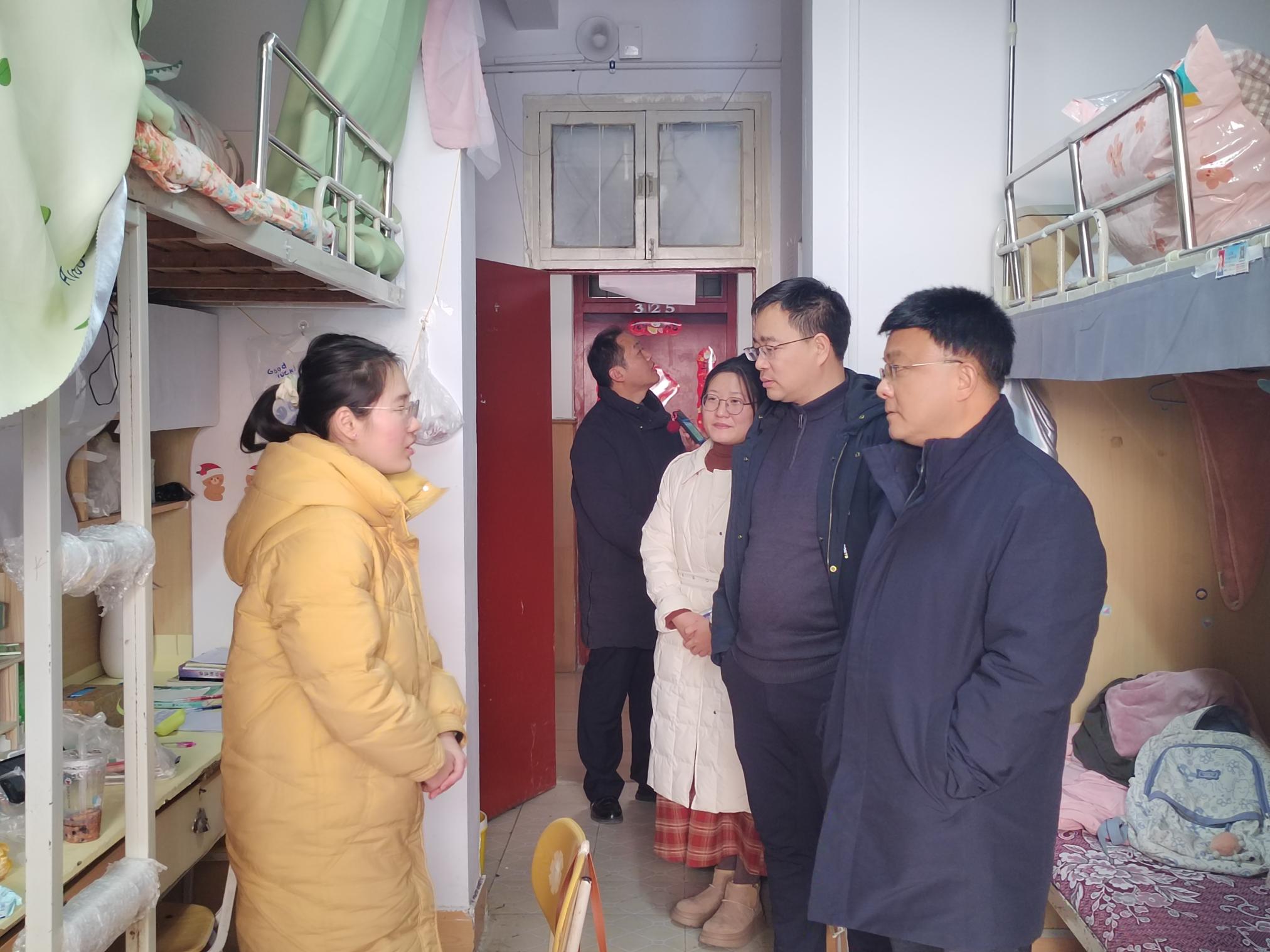 走访现场本网讯(刘婷婷/文史珂/图)时值岁末,为全面了解学生的期末学习与生活情况,拉近学校与学生之间的距离,12月31日上午,副校长刘红林深入学生宿舍走访调研。院长办公室、学生处相关人员陪同走访。“你家乡是哪里的?”“回家路程远不远?”“在连廊背书冷不冷?”“学习上有什么困难?”每到一间宿舍,刘红林都与同学们拉家常、聊近况,并送去关心和问候。在毕业生宿舍,刘红林详细询问了毕业生的实习、考研情况及未来规划,鼓励同学们坚定信念,紧抓机遇,始终把个人理想融入国家和民族的事业中,以实际...