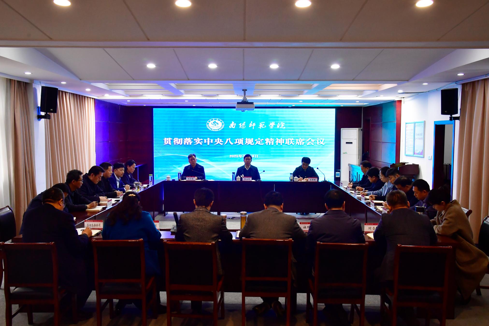3月18日下午,新葡萄官网在办公大楼一楼东会议室召开贯彻落实中央八项规定精神联席会议。校党委书记张宝锋,党委副书记孟静雅,纪委书记、监察专员刘守勇出席。联席会议成员单位负责同志参加。会议由孟静雅主持。会议听取了联席会议成员单位关于2025年工作计划以及相关措施的汇报。张宝锋对各联席会议成员单位的工作给予肯定,并就做好今年贯彻落实中央八项规定精神及其实施细则精...