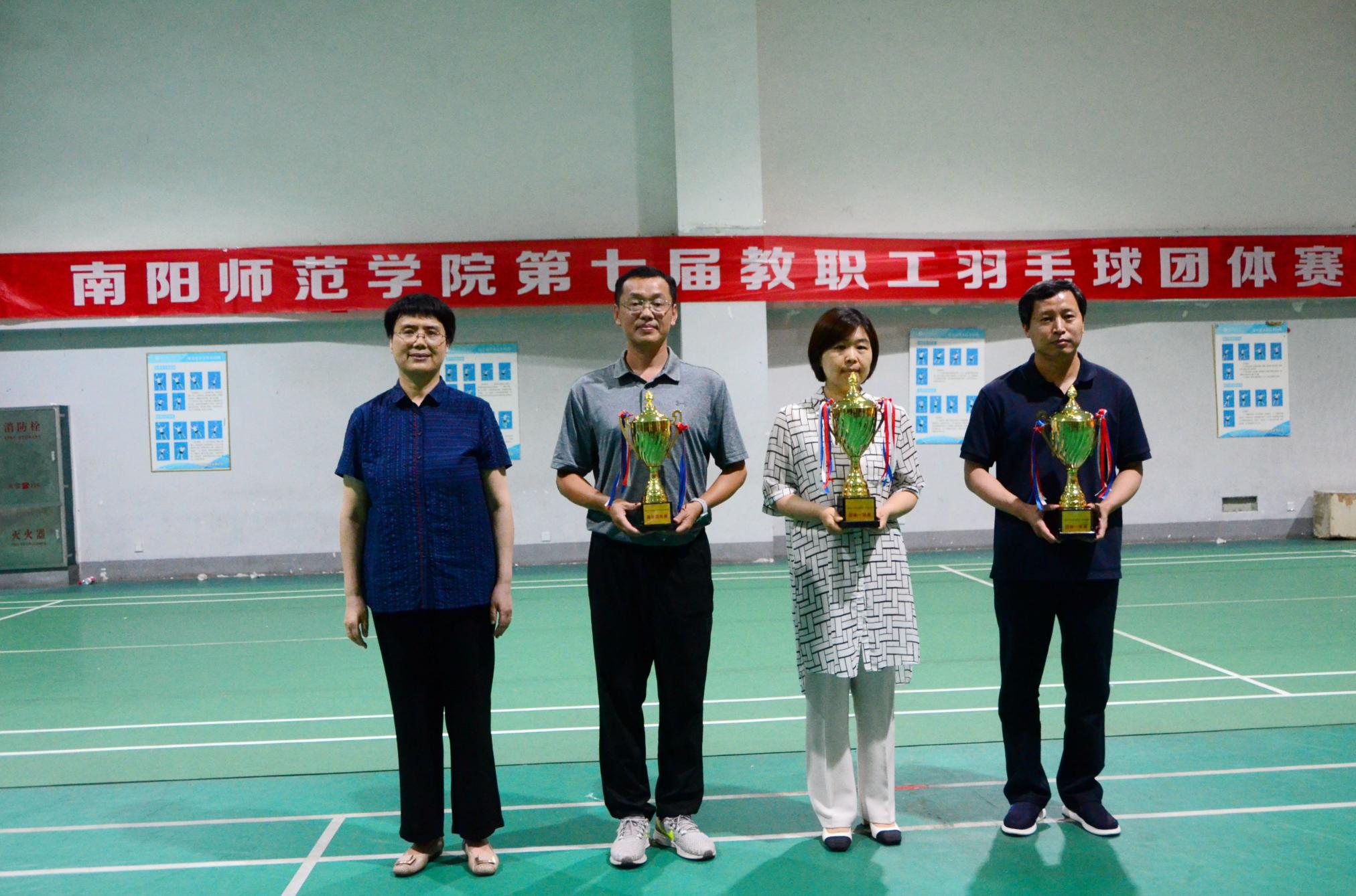 1颁奖现场2颁奖现场3颁奖现场4比赛现场5比赛现场6比赛现场本网讯(通讯员 宋涛 图/文)6月10日,新葡萄8883官网AMG第七届教职工羽毛球比赛在中区体育馆落下帷幕。校党委副书记孟静雅参加颁奖典礼。本届赛事分第一阶段小组循环赛,第二阶段淘汰赛,第三阶段循环赛三部分,设团体项目(混双、男单、女单、男双、女双),25个分会约300教职工参加角逐。比赛现场高潮迭起,选手们以精准的发球、凌厉的扣杀和默契的网前配合展现竞技风采。经过九天的激烈角逐,数学与统计学院分会获得冠军,美术与艺术设计学院分...