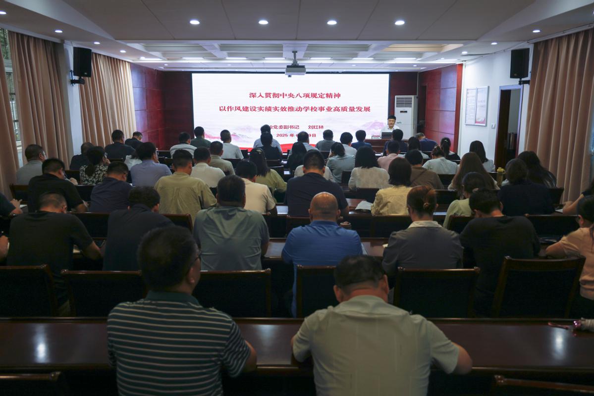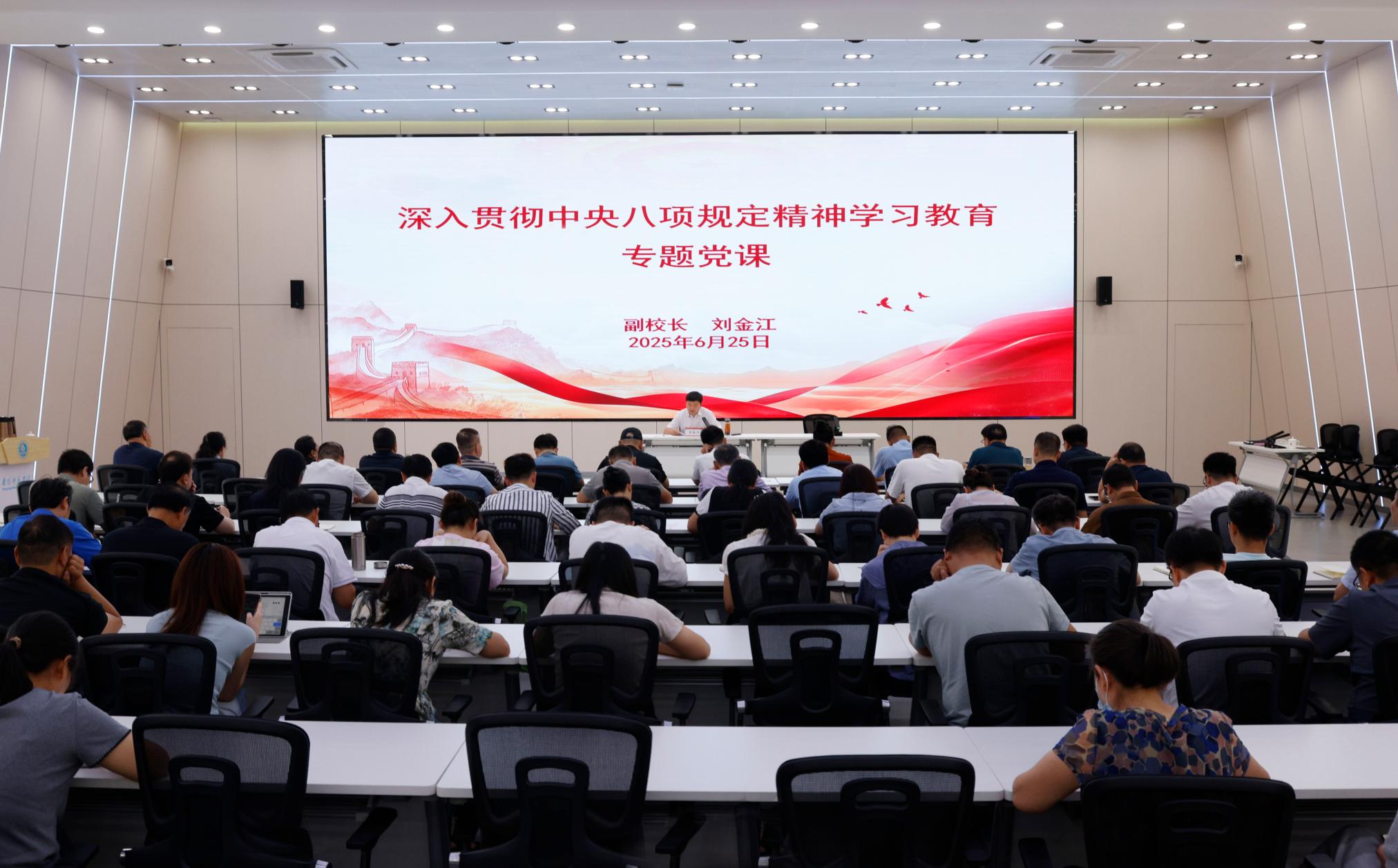 为强化党员干部作风建设,深入贯彻中央八项规定精神学习教育。6月25日下午,副校长王岩以“深入贯彻中央八项规定精神,以扎实作风建设推动学校事业高质量发展”为题,在办公大楼一楼东会议室讲授专题党课。相关职能部门和学院参加学习。王岩围绕中央八项规定及中央八项规定精神的主要内涵、执行情况、取得的成效、以及以扎实作风建设推进学校两大目标的实现四个方面进行讲授。王岩结合高等教育发展现状和未来趋势,分析了学校在实现“更名大学和获批博士...
