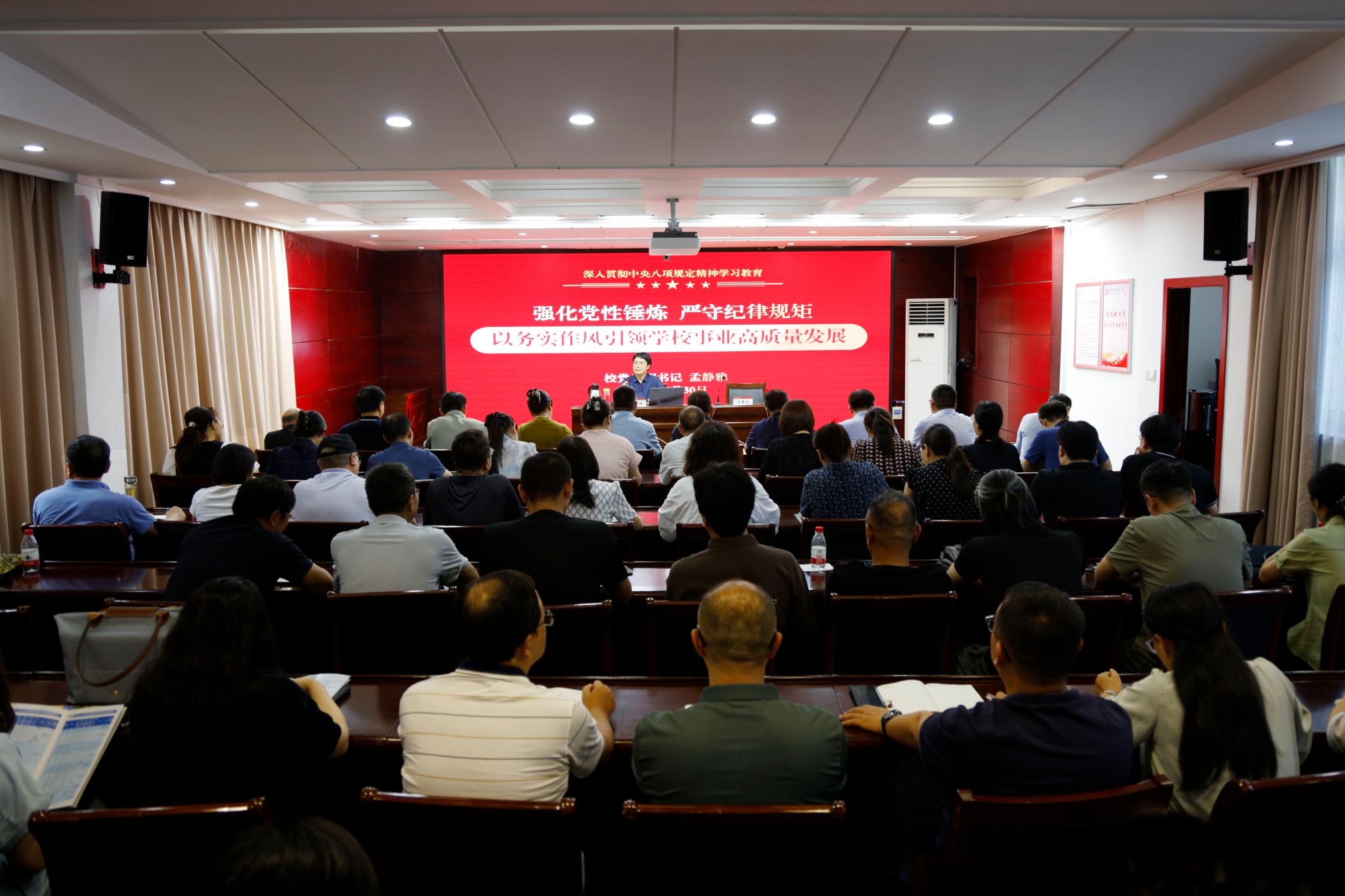为推进深入贯彻中央八项规定精神学习教育,6月30日下午,校党委副书记孟静雅在办公大楼一楼东会议室讲授《锤炼党性修养严守纪律规矩以务实作风引领学校事业高质量发展》专题党课。分管部门和联系单位教职工党员参加。孟静雅围绕深刻领会中央八项规定精神的时代内涵、推动贯彻落实中央八项规定精神落地见效的具体要求、深入剖析高校系统违反中央八项规定精神典型案例、坚持不懈推进作风建设常态化长效化四个方面进行讲授。孟静雅指出,党员干部应该认真学...