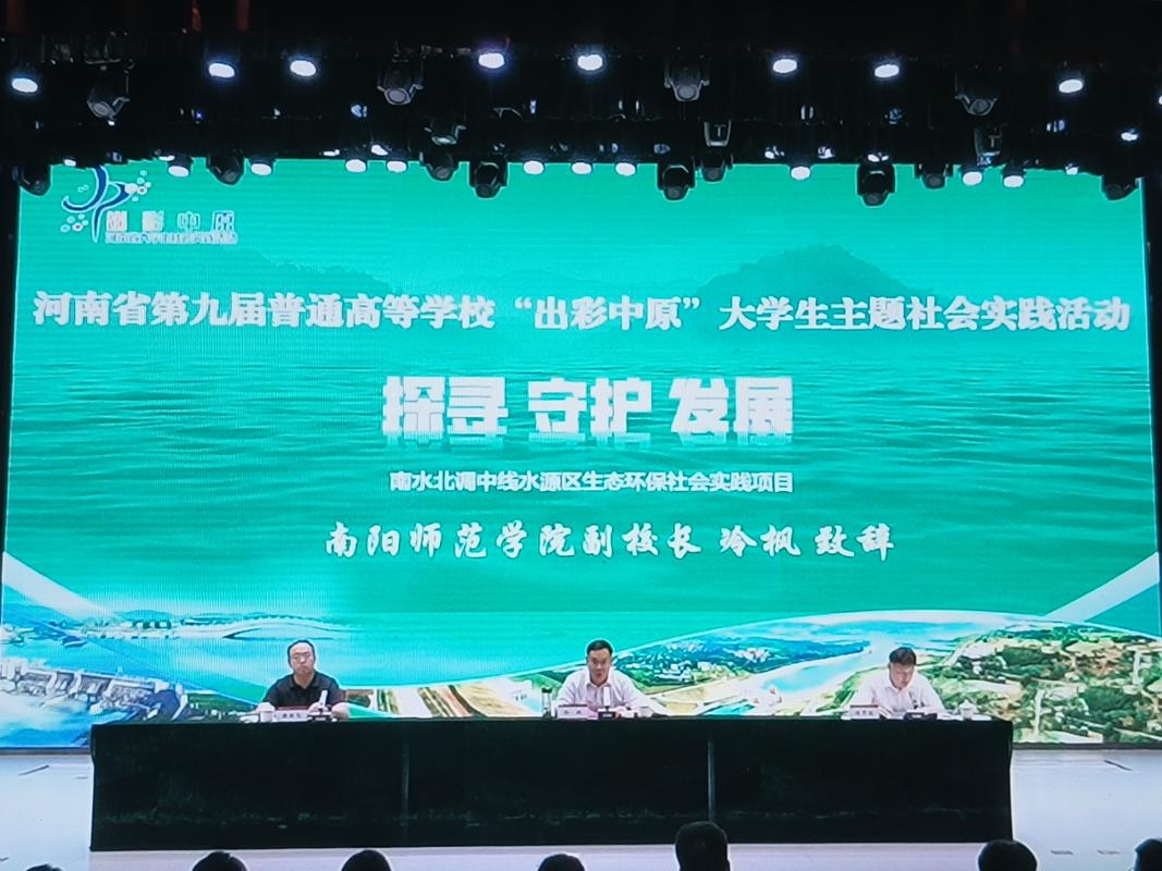 7月7日下午,由河南省教育厅主办、新葡萄8883官网AMG承办的河南省第九届普通高等学校“出彩中原”大学生主题社会实践活动之“探寻·守护·发展”——南水北调中线水源区生态环保调研实践开班仪式在新葡萄8883官网AMG音乐厅开班。副校长冷枫,党委学工部长、学生处和校团委负责同志出席。来自全省35所高校的100名优秀大学生、新葡萄8883官网AMG学生处全体人员和部分教师代表参加。...