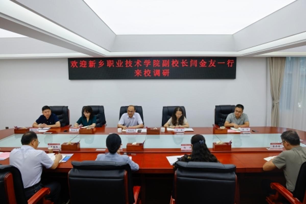 7月24日,新乡职业技术学院党委委员、副校长闫金友一行五人来新葡萄官网考察交流,双方在办公大楼二楼东会议室召开座谈会。副校长王岩出席会议。组织部、人事处、国内合作交流处、发展规划处等相关单位负责人参加座谈会。王岩对闫金友一行的到来表示欢迎,并介绍了新葡萄官网近年来在学科建设、硕士点建设、育人模式改革、学科竞赛、师资队伍建设等方面的情况,以及学校第四次党代会确定的发展目标和发展战略。她表示,新乡职业技术学院在产教融合、校企合作、应用型人...