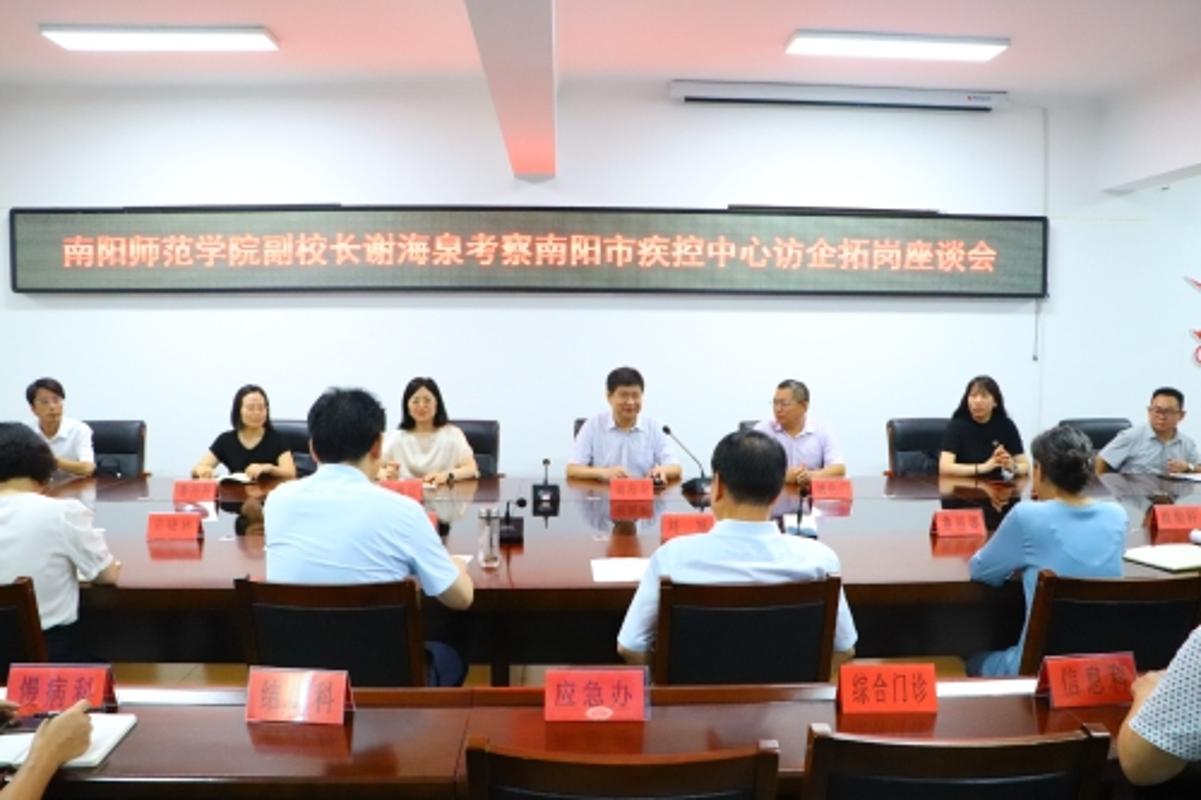 7月16日上午,副校长谢海泉带领研究生处、生命科学学院和化学与制药工程学院相关负责同志及教师代表赴南阳市疾控中心开展访企拓岗促就业暨研究生联合培养工作站揭牌仪式。市卫健体委党组书记、主任顾理致辞,市疾控中心主任刘旭介绍了南阳市疾控中心的发展历史和人才队伍建设等状况。谢海泉介绍了新葡萄官网的办学历史、学科专业建设和研究生培养情况。他希望在实习实训、人才招聘、产学研合作等方面与疾控中心建立合作机制,找准学...