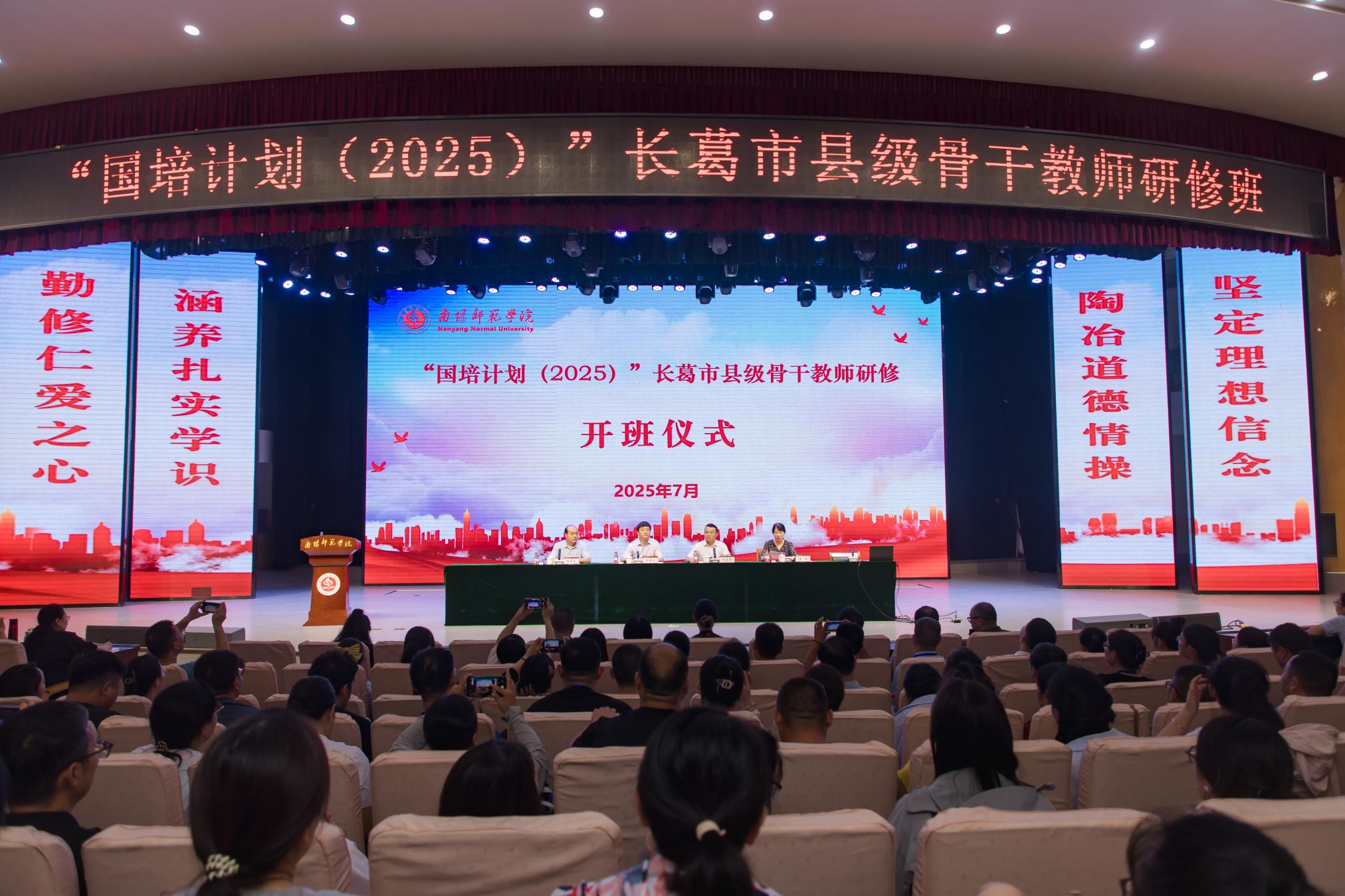 7月17日下午,新葡萄官网在中区音乐厅举行“国培计划(2025)”长葛市县级骨干教师研修班开班仪式。新葡萄8883官网AMG副校长刘金江,长葛市教体局局长代晓辉、副局长袁新友,研修班班主任及200名国培项目参训学员参加。仪式由教师发展中心主任王燕主持。刘金江在致辞中阐述了实施“国培计划”项目的重要意义,介绍了新葡萄官网十余年来在国培项目推进中的实践成果与经验积淀。他对全体学员提出四点殷切期望:一是要做“使命在肩” 的践行者;二是要做“潜心问道”的求知者;三是要做...
