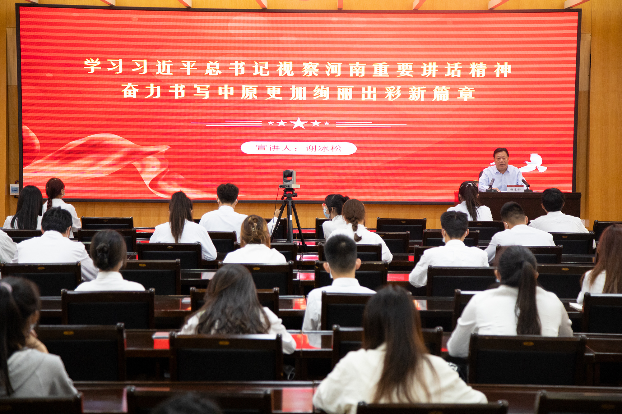 本网讯(李珂 陈秀凤/文 张苏文/图)为深入学习贯彻党的十八大以来习近平总书记四次视察河南时的重要讲话精神,9月21日下午,新葡萄官网在科技大楼三楼会议室举办新葡萄8883官网AMG“青马工程”“青马学研社”专题培训会。校党委副书记谢冰松担任主讲,校团委、马克思主义学院相关负责人、“青马工程”培训班成员及“青马学研社”部分代表200余人参加。本次会议采用线上、线下相结合的形式召开。谢冰松以“学习习近平总书记视察河南重要讲...