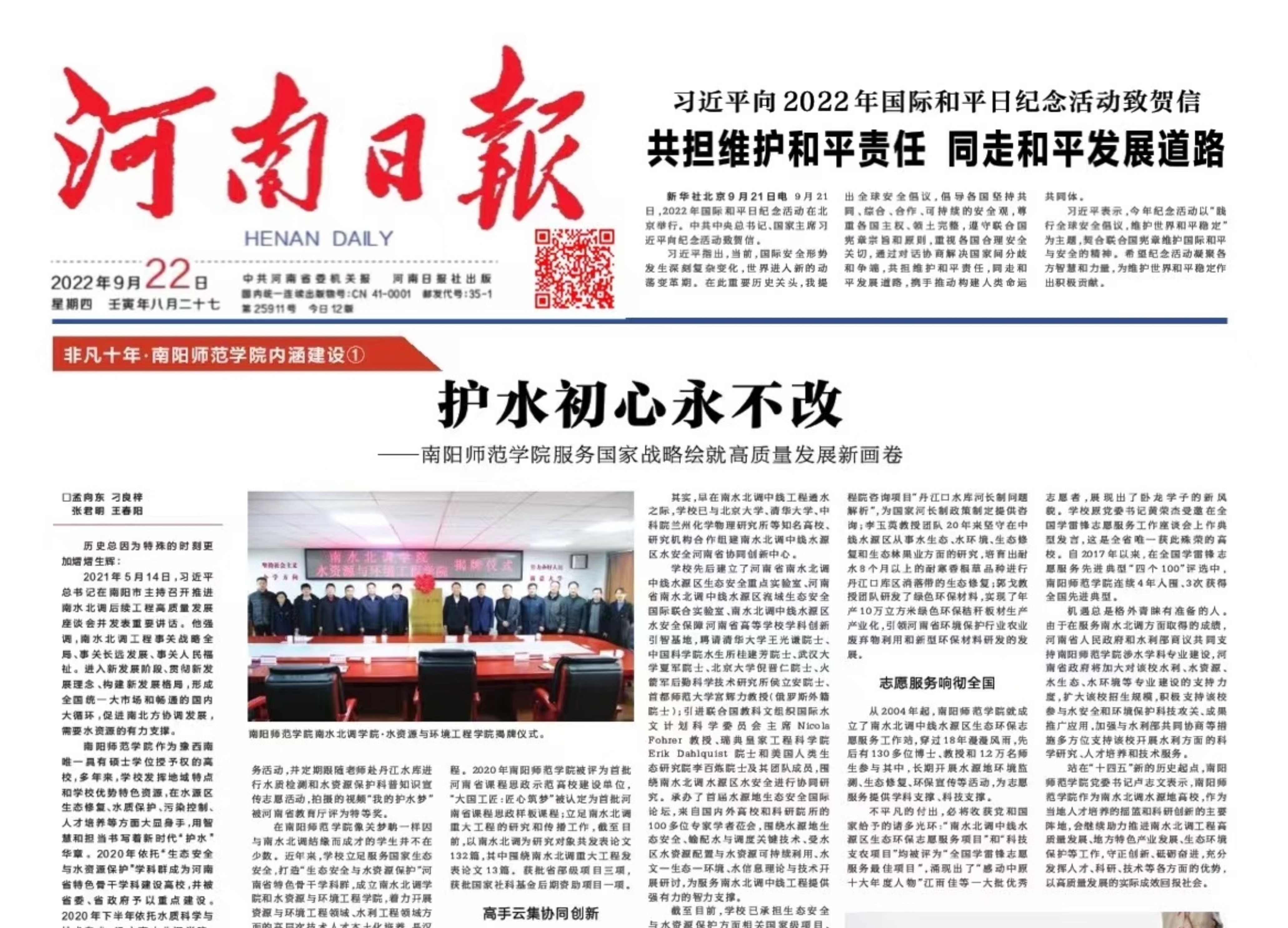 2022年9月22日,《河南日报》开辟“非凡十年·新葡萄8883官网AMG内涵建设”栏目,刊发新葡萄8883官网AMG系列文章①《护水初心永不改——新葡萄8883官网AMG服务国家战略绘就高质量发展新画卷》,现全文转载如下:□ 孟向东 刁良梓 张君明 王春阳历史总因为特殊的时刻更加熠熠生辉:2021年5月14日,习近平总书记在南阳市主持召开推进南水北调后续工程高质量发展座谈会并发表重要讲话。他强调,南水北调工程事关战略全局、事关长远发展、事关人民福...