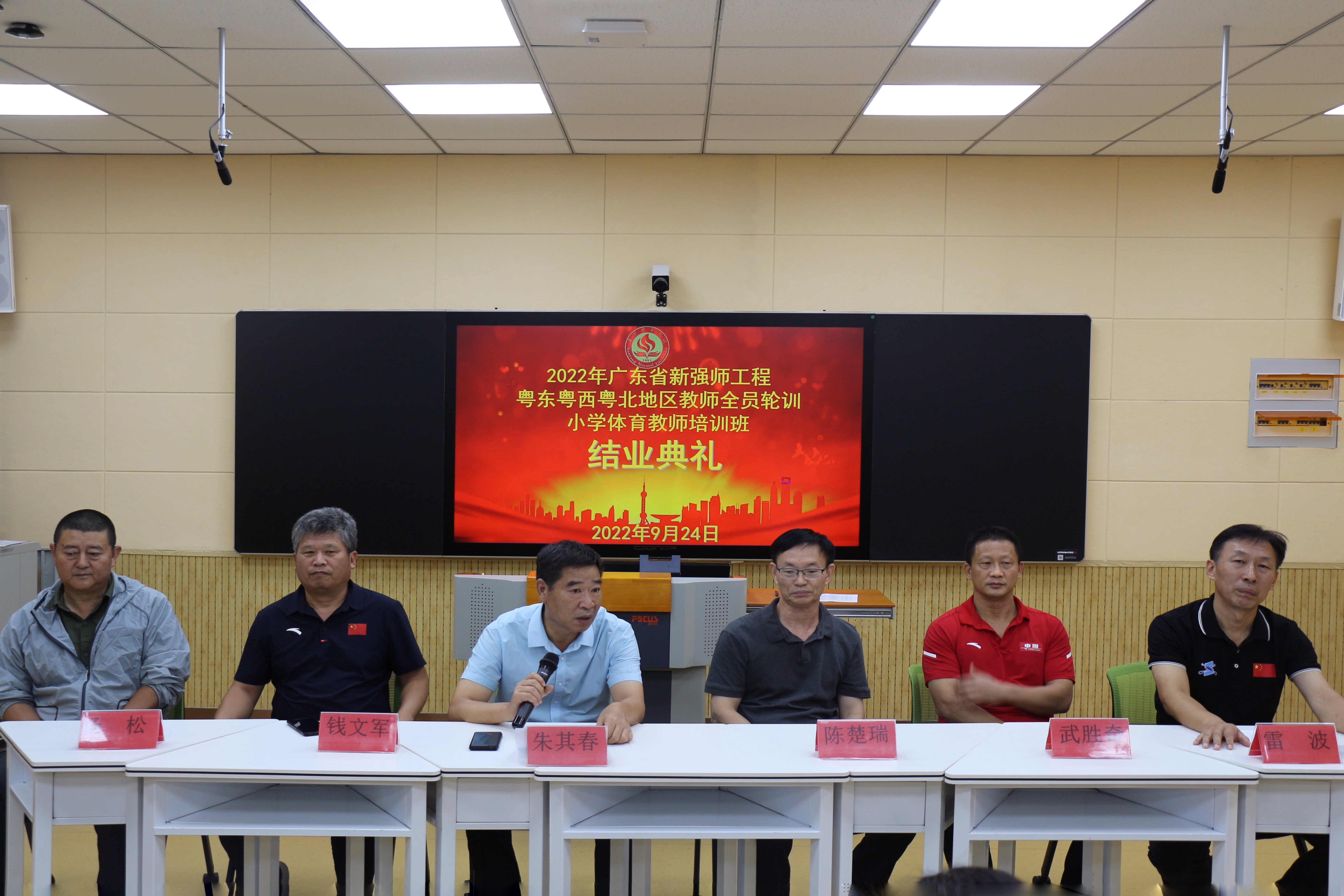 本网讯(王满/文 张玺文/图)日前,广东省新强师工程教师全员轮训——小学体育教师培训班结业典礼在科技楼234教室举行。新葡萄8883官网AMG副校长朱其春、广东省外语艺术职业学院党委副书记兼纪委书记陈楚瑞出席,体育学院负责同志及全体培训学员参加。结业典礼由体育学院党委书记雷波主持。结业典礼上,朱其春代表学校致辞,他首先向给与本次培训提供帮助的广东省外语艺术职业学院表示诚挚感谢,对各位学员认真研学表示由衷赞赏,对...