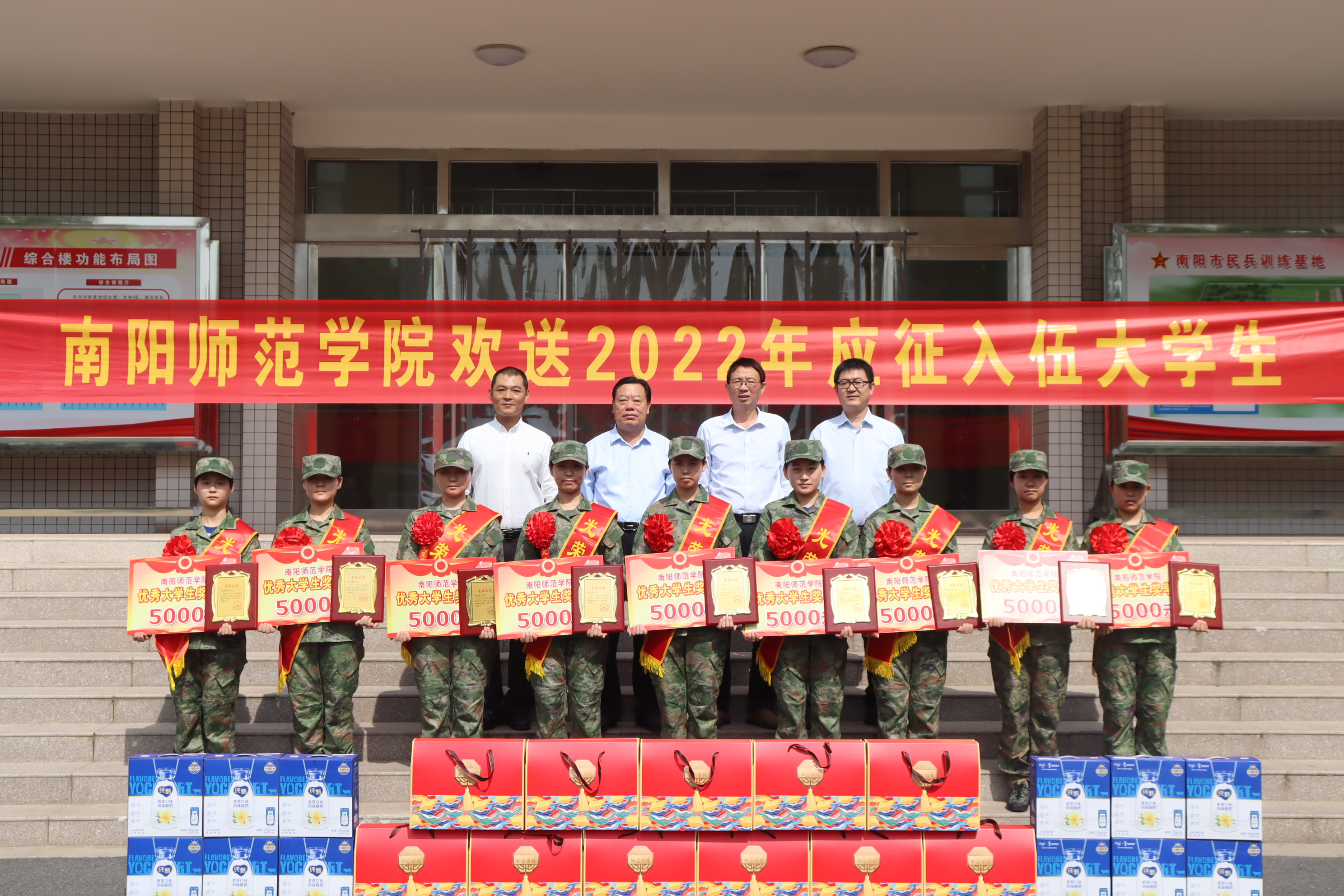 1.谢冰松为入伍新兵颁发荣誉证书和专项奖学金2.合影留念本网讯(许海滨/文 孙湘/图)9月22日,新葡萄官网在南阳市民兵训练基地举行2022年秋季入伍女兵欢送仪式。党委副书记谢冰松出席,校人民武装部全体工作人员参加,仪式由人民武装部部长裴保春主持。谢冰松首先代表学校向通过层层选拔、即将踏上征程的9名卧龙学子表示祝贺,他勉励同学们到部队后,要积极主动履行军人职责,担当如山使命,按照部队的要求学知识、学技术、学能力,尽...