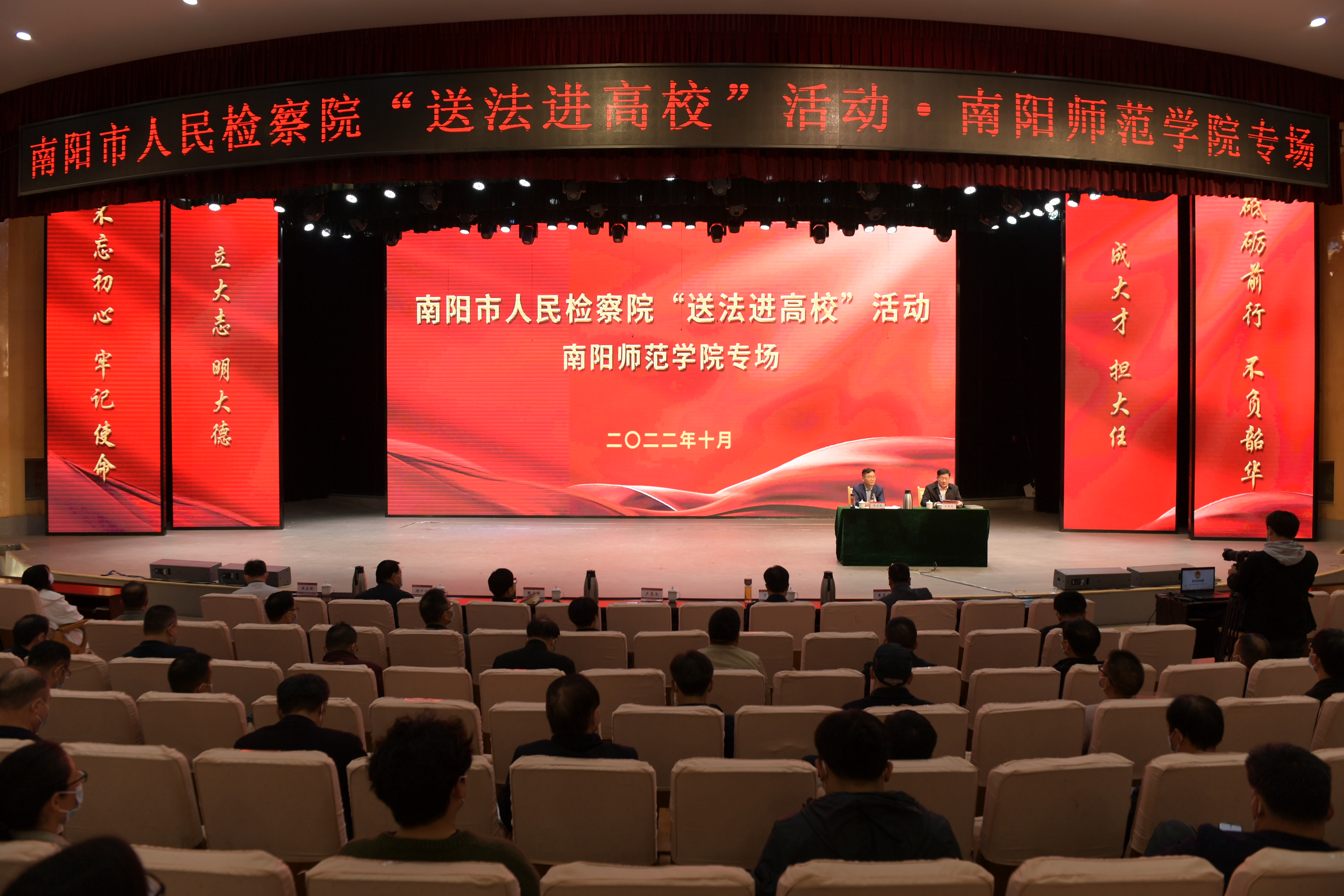 1.报告会现场2.南阳市人民检察院党组书记、代检察长张志强应邀作报告3.校党委书记卢志文讲话4.报告会现场本网讯(黄维/文 王嘉豪/图)10月14日下午,南阳市人民检察院党组书记、代检察长张志强应邀为学校师生作了一场主题为“护航青春,预防犯罪”的法治宣讲专题报告会。校领导卢志文、张宝锋、谢冰松、孟静雅、于继武、罗永松、刘红林,师生代表参加报告会。报告会由校党委书记卢志文主持。张志强的报告主要分为两个部分。他首...