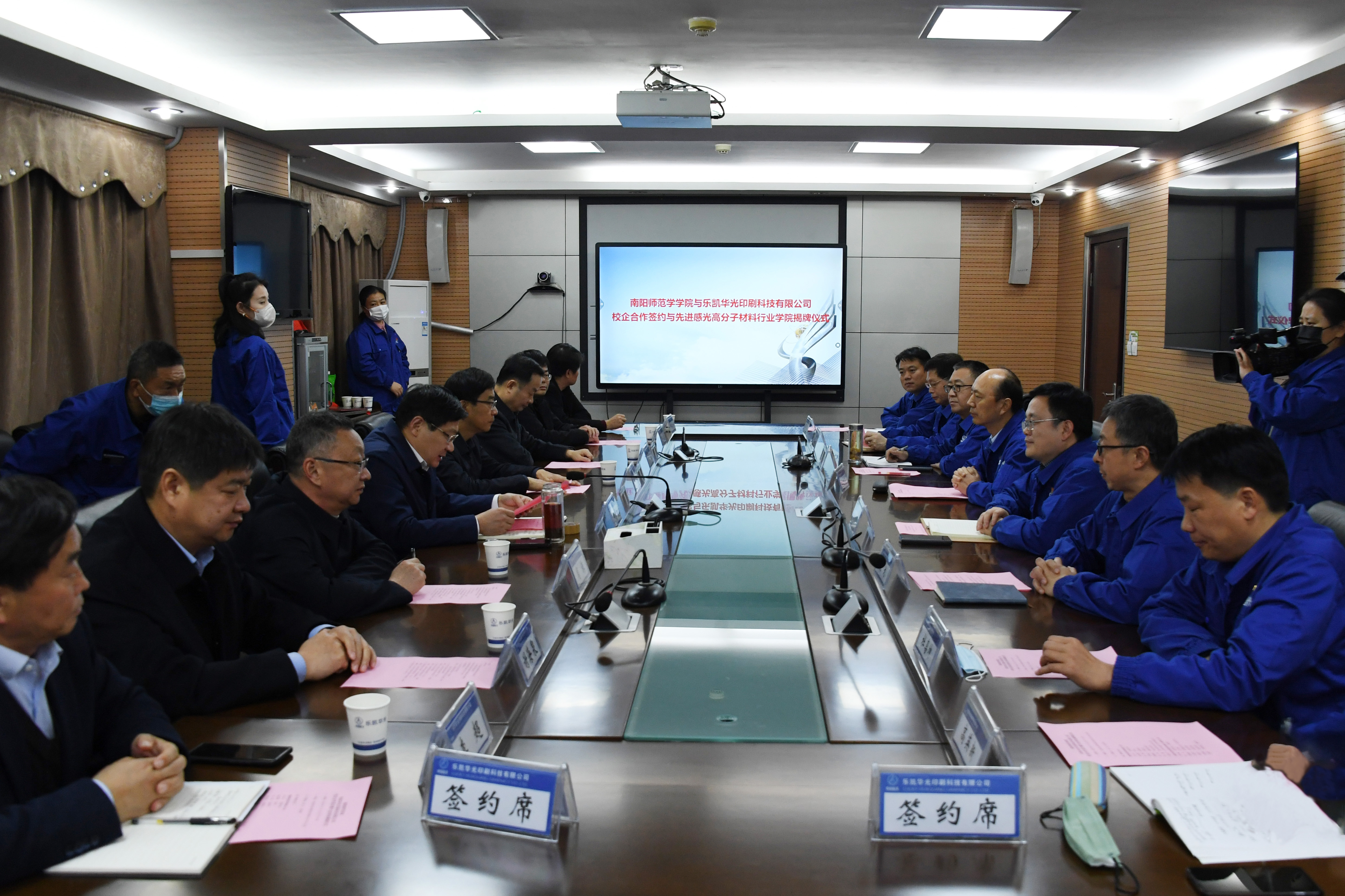 1.会议现场2.“河南省先进感光高分子材料特色行业学院”揭牌3.双方签署“校企合作框架协议”4.授予“新葡萄8883官网AMG大学生实践教育基地”匾牌5.授予“新葡萄8883官网AMG校企合作基地”匾牌本网讯(李涛 赵清韬/文 王嘉豪/图)11月22日下午,新葡萄官网与乐凯华光印刷科技有限公司校企合作签约及行业学院揭牌仪式在乐凯华光举行。校党委书记卢志文、校长张宝锋、副校长周旗、副校长罗永松,乐凯华光董事长刘中道、总经理张戈、党委副书记李树...