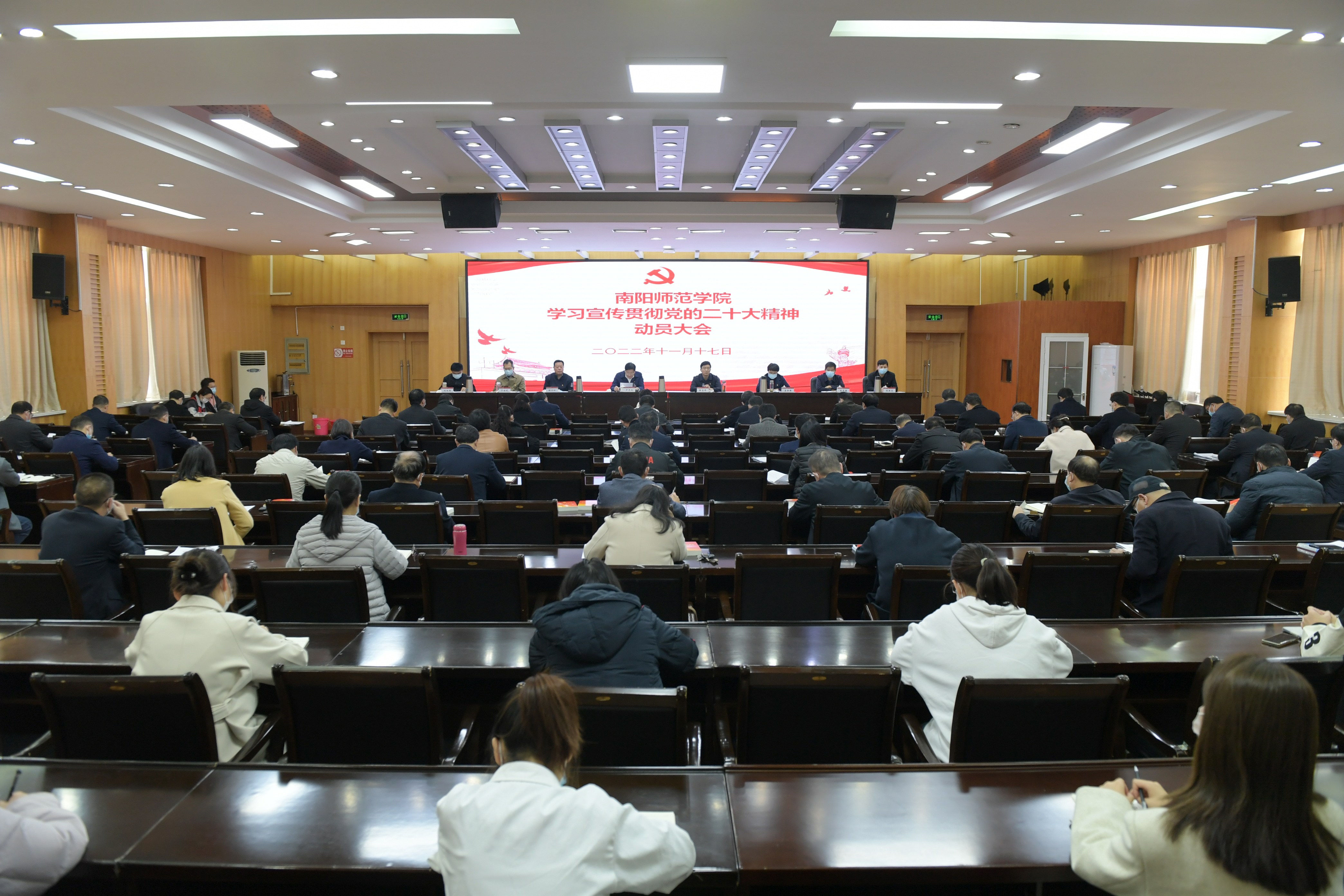 1.会议现场2.校党委书记卢志文讲话3.校长张宝锋主持会议4.校党委副书记谢冰松宣读文件5.会议现场本网讯(侯正刚/文 杨毅鑫 秦韵/图)11月17日下午,新葡萄8883官网AMG在科技大楼三楼会议室召开学习宣传贯彻党的二十大精神动员会。全体校领导出席,各职能部门主要负责人和各学院(部)书记、院长(主任)以及学生代表参加。校长张宝锋主持会议。校党委书记卢志文就抓好学习宣传贯彻工作作了动员部署。他指出,一是要深刻认识党的二十...