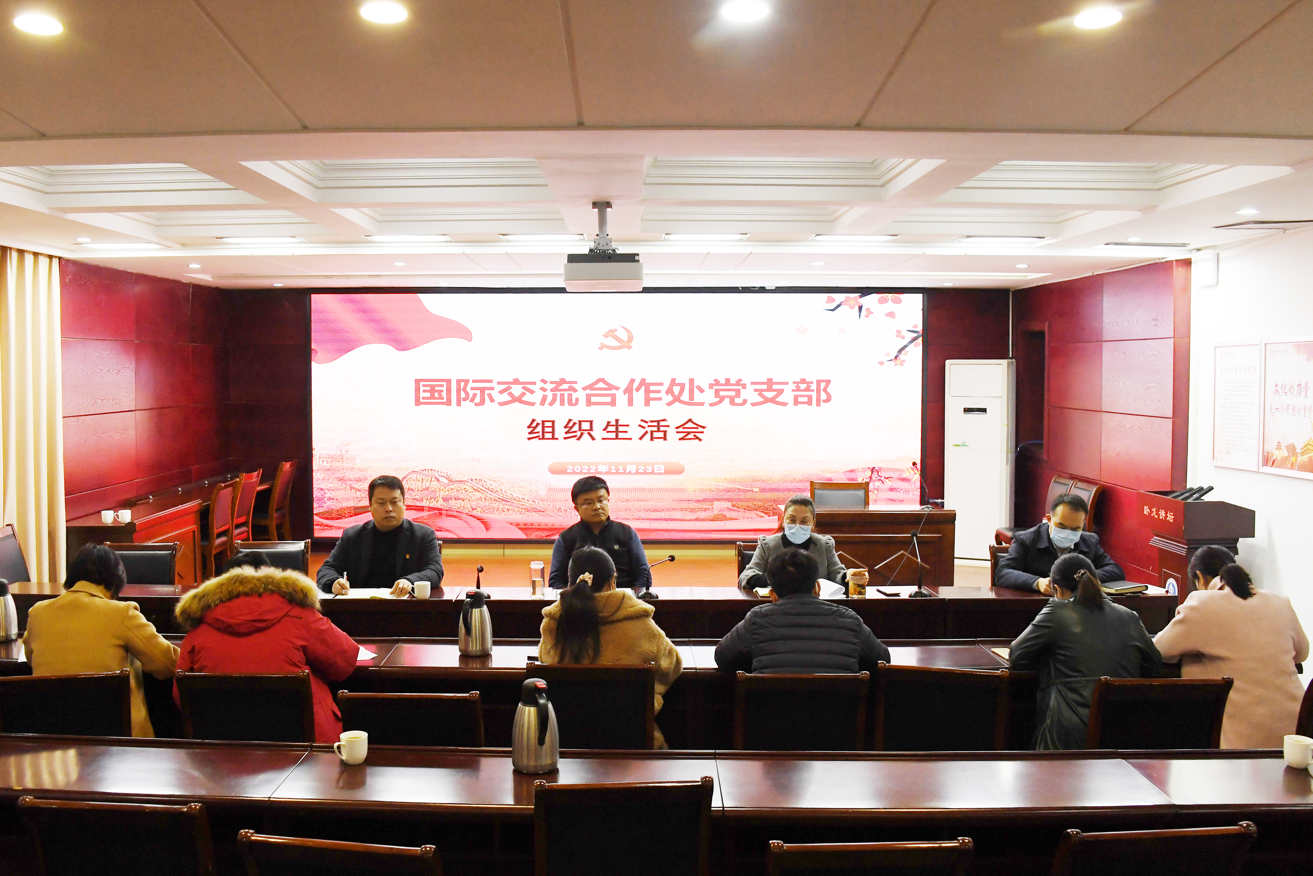 本网讯(王广琦/文 王嘉豪 郭靖淼/图)11月23日,国际处党支部在办公楼一楼东会议室召开“深入学习习近平总书记视察安阳重要讲话精神,大力弘扬红旗渠精神”专题组织生活会。副校长刘红林以普通党员身份参加。会议首先学习了习近平总书记视察安阳重要讲话精神,组织观看中央电视台《国家记忆》栏目播出的专题片《根脉——红旗渠精神》。随后,各位党员紧紧围绕会议主题,深入开展交流讨论。刘红林指出,党员干部要深刻理解把握...