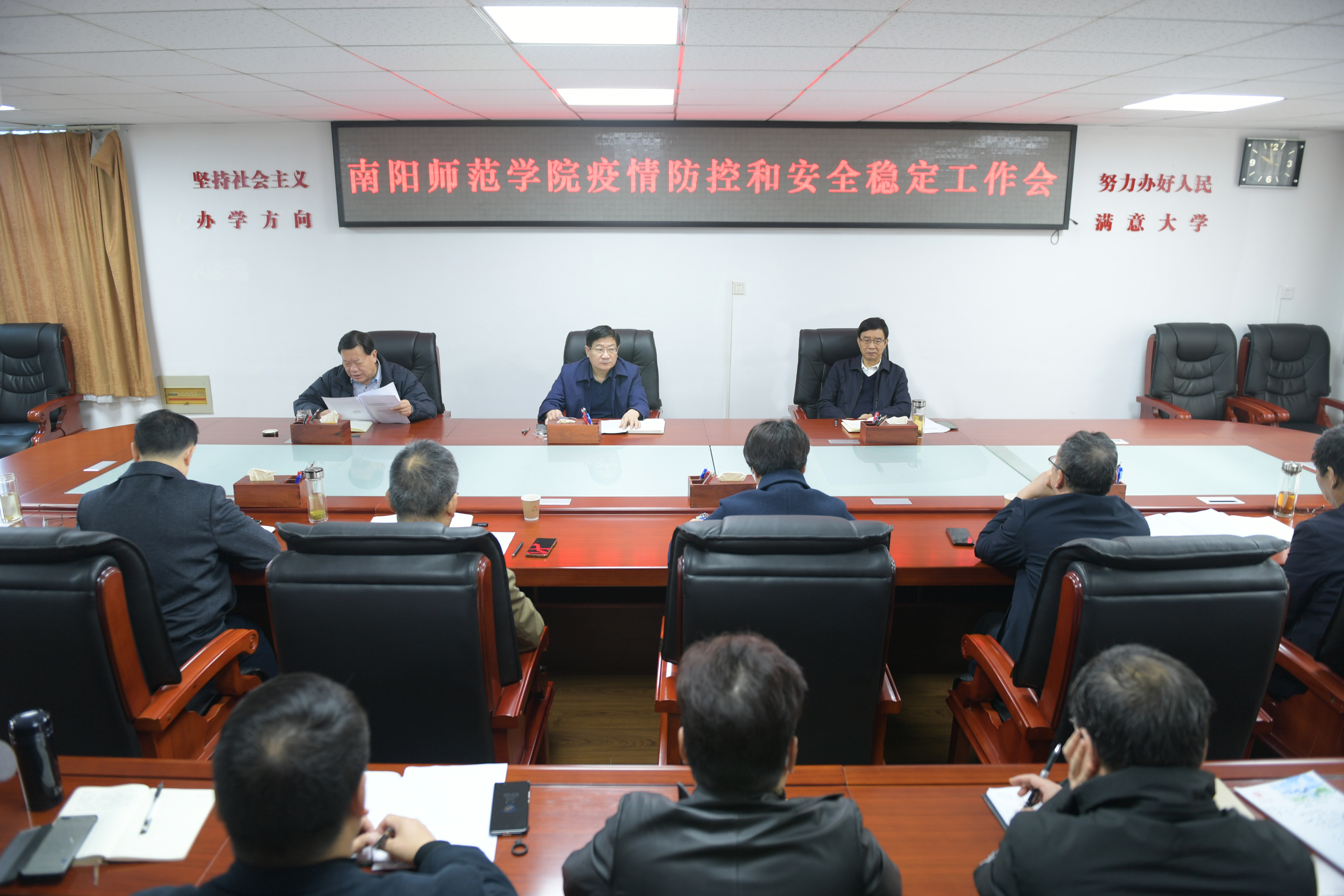 本网讯(张亚楠/文 崔雅雯/图)11月15日上午,新葡萄官网在办公大楼二楼会议室召开疫情防控与安全稳定工作会议。校党委书记卢志文,校长张宝锋,校党委副书记谢冰松,副校长孟静雅,纪委书记、监察专员于继武,副校长周旗、罗永松、朱其春、刘红林出席会议,学校疫情防控指挥部各成员单位负责人参加会议。卢志文主持会议。谢冰松传达了省疫情防控指挥部办公室《关于进一步优化全省高校疫情防控措施的指导意见》文件精神,与会校领导结...