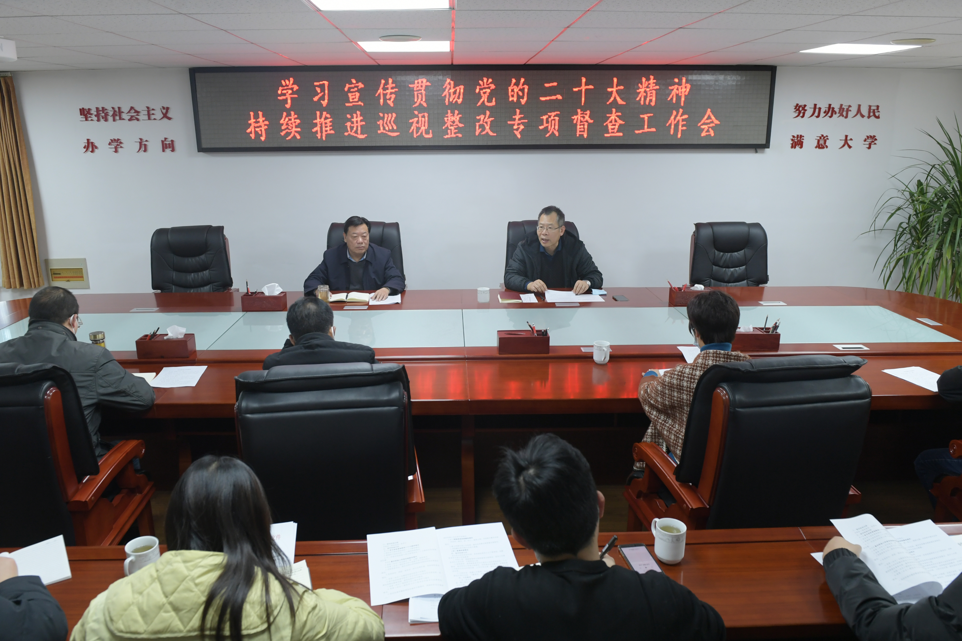 本网讯(唐旗/文 王宏洋/图)12月7日下午,新葡萄官网在办公大楼三楼会议室召开学习宣传贯彻党的二十大精神、持续推进巡视整改专项督查工作会。校党委副书记谢冰松,纪委书记、监察专员于继武出席,全体在校督查组成员参加。于继武主持会议。于继武就督查工作提出要求,并对持续推进巡视整改情况提出具体督查措施,一是要认真学习研究巡视整改报告和整改台账,弄清整改内容,做到心中有数,看持续整改是否到位;二是要对整改台账的完...