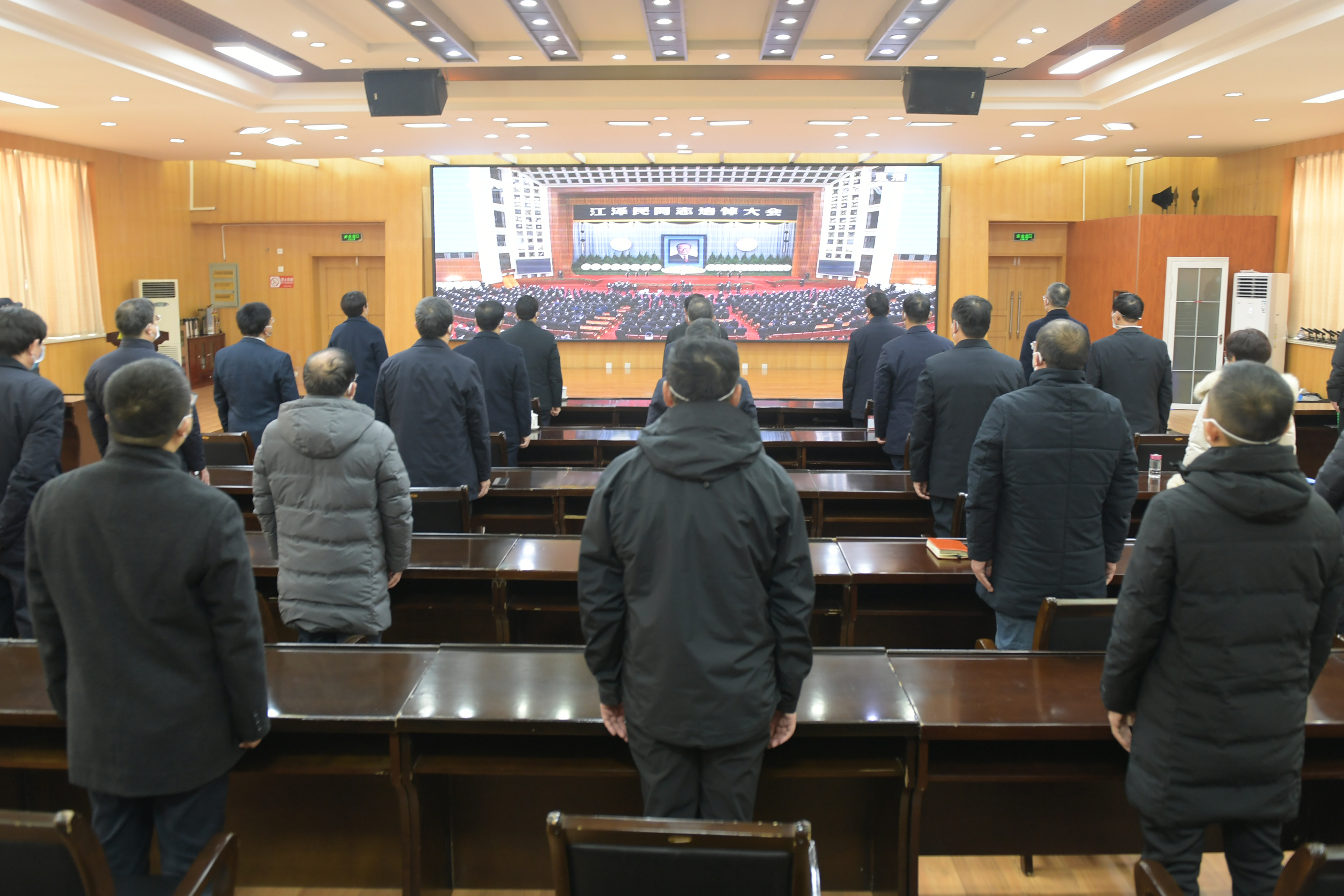 本网讯 12月6日上午10时,党中央、全国人大常委会、国务院、全国政协、中央军委在北京人民大会堂隆重举行江泽民同志追悼大会,新葡萄8883官网AMG认真组织全校师生收听收看追悼大会现场直播,并降半旗志哀。学校党政领导班子成员、干部师生代表在科技大楼三楼会议室集中收看追悼大会,各二级党组织、各单位组织师生采取线上线下相结合方式收听收看追悼大会。