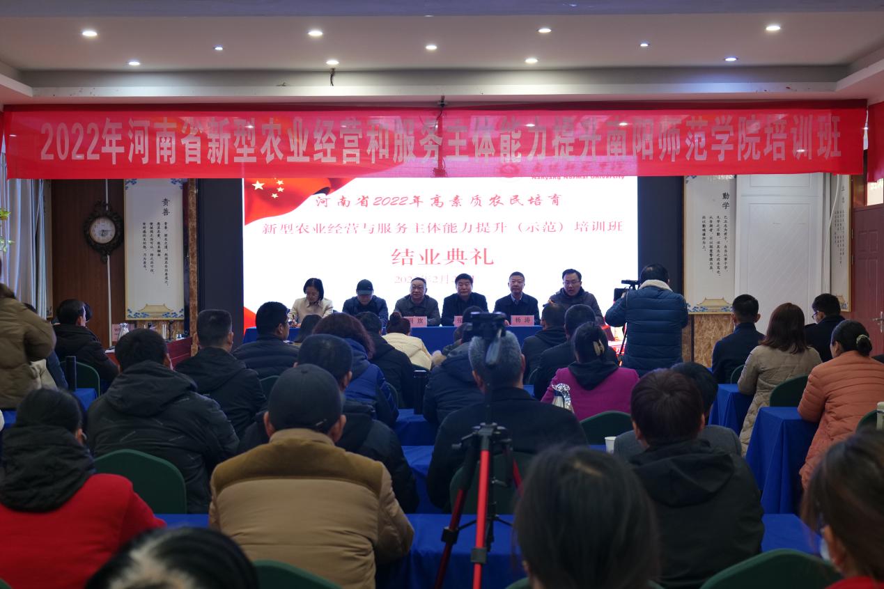 2月20日上午,由生命科学与农业工程学院承办的2022年河南省新型农业经营与服务主体能力提升(示范)第二期培育班结业典礼在南岸明珠酒店会议厅举行。新葡萄官网副校长周旗,南阳市农业农村局副局长张修峰,生命科学与农业工程学院、校友办负责同志及全体学员参加。周旗和张修峰向优秀学员代表颁发荣誉证书。校友办主任付中欣向学员代表颁发校友证书。生命科学与农业工...