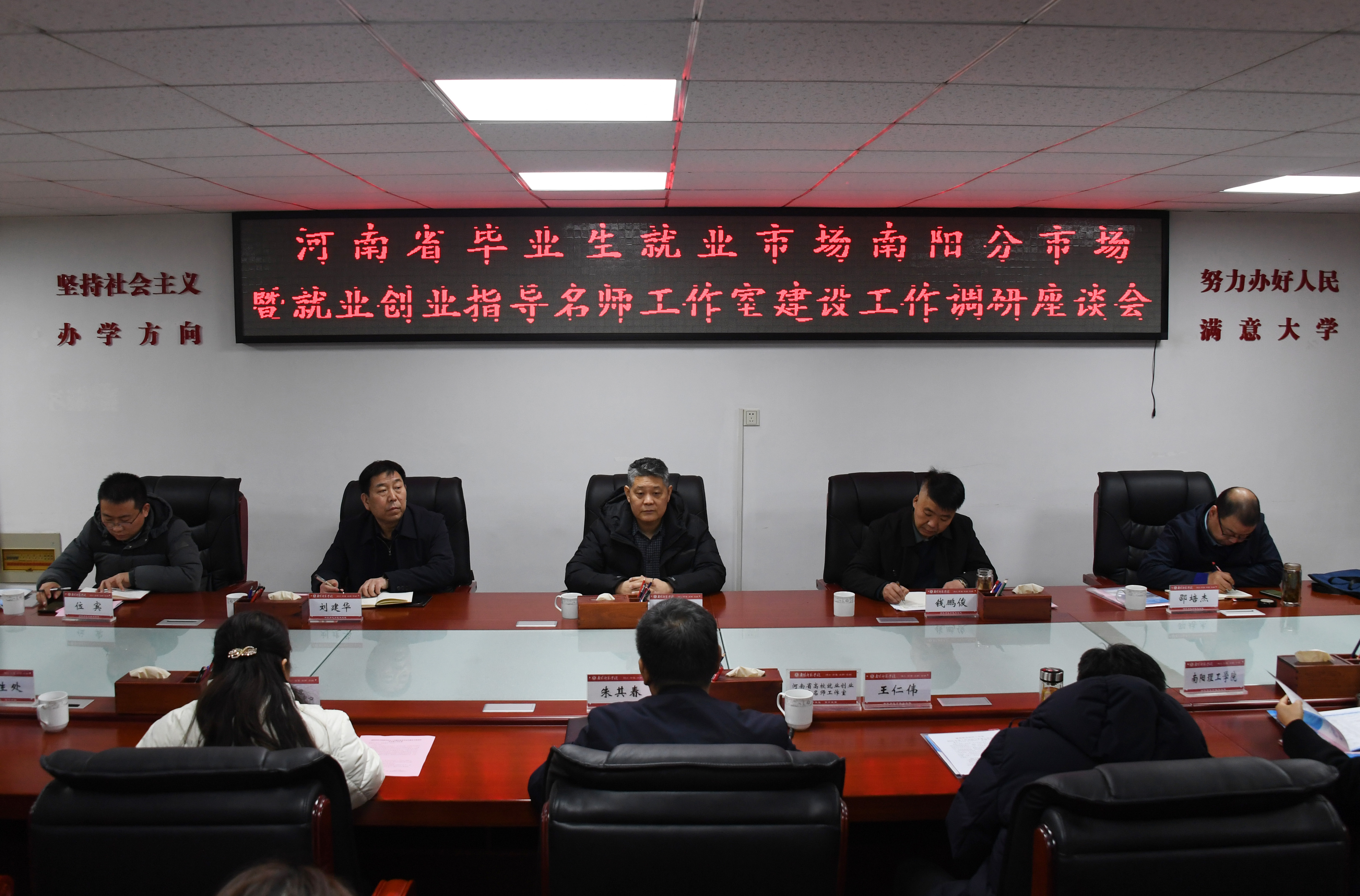 2月23日上午,河南省毕业生就业市场南阳分市场暨就业创业指导名师工作室建设工作调研座谈会在办公大楼二楼会议室召开。省教育厅学生处二级调研员王新生、省教育厅学生处一级主任科员钱鹏俊、华北水利水电大学图书馆馆长刘建华、河南省大中专学生就业服务中心副主任邵培杰、职业能力建设部主任位宾等来校调研指导工作。河南工业职业技术学院副校长王仁伟等河南省高校就业...
