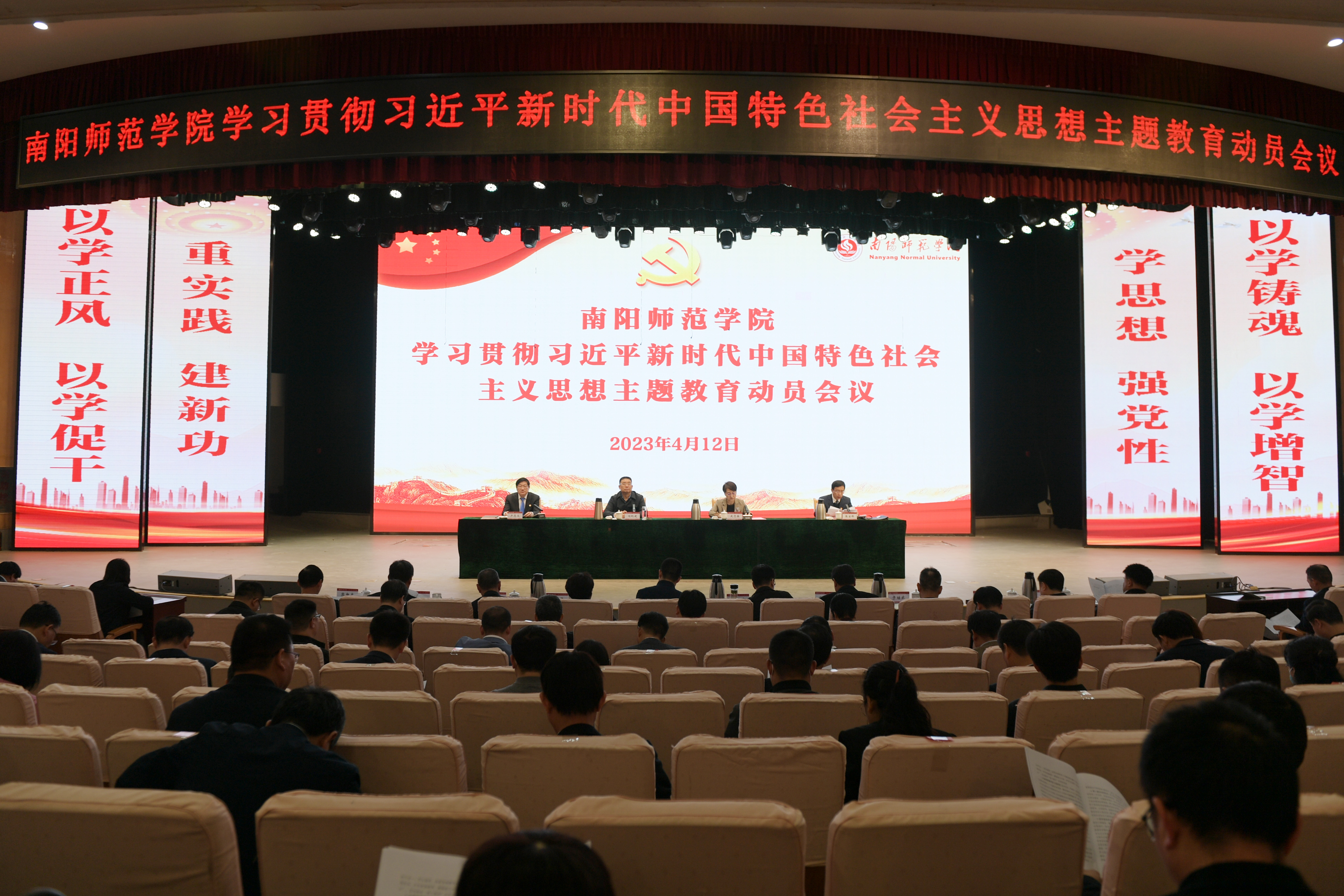 4月12日上午,新葡萄官网在音乐厅召开学习贯彻习近平新时代中国特色社会主义思想主题教育动员会。省委第二十七巡回指导组组长闫纪建出席会议并讲话,副组长庆志英及指导组成员、新葡萄官网全体校领导出席会议,全体中层干部参加会议。校党委书记卢志文作主题教育动员讲话,校长张宝锋主持会议。张宝锋首...