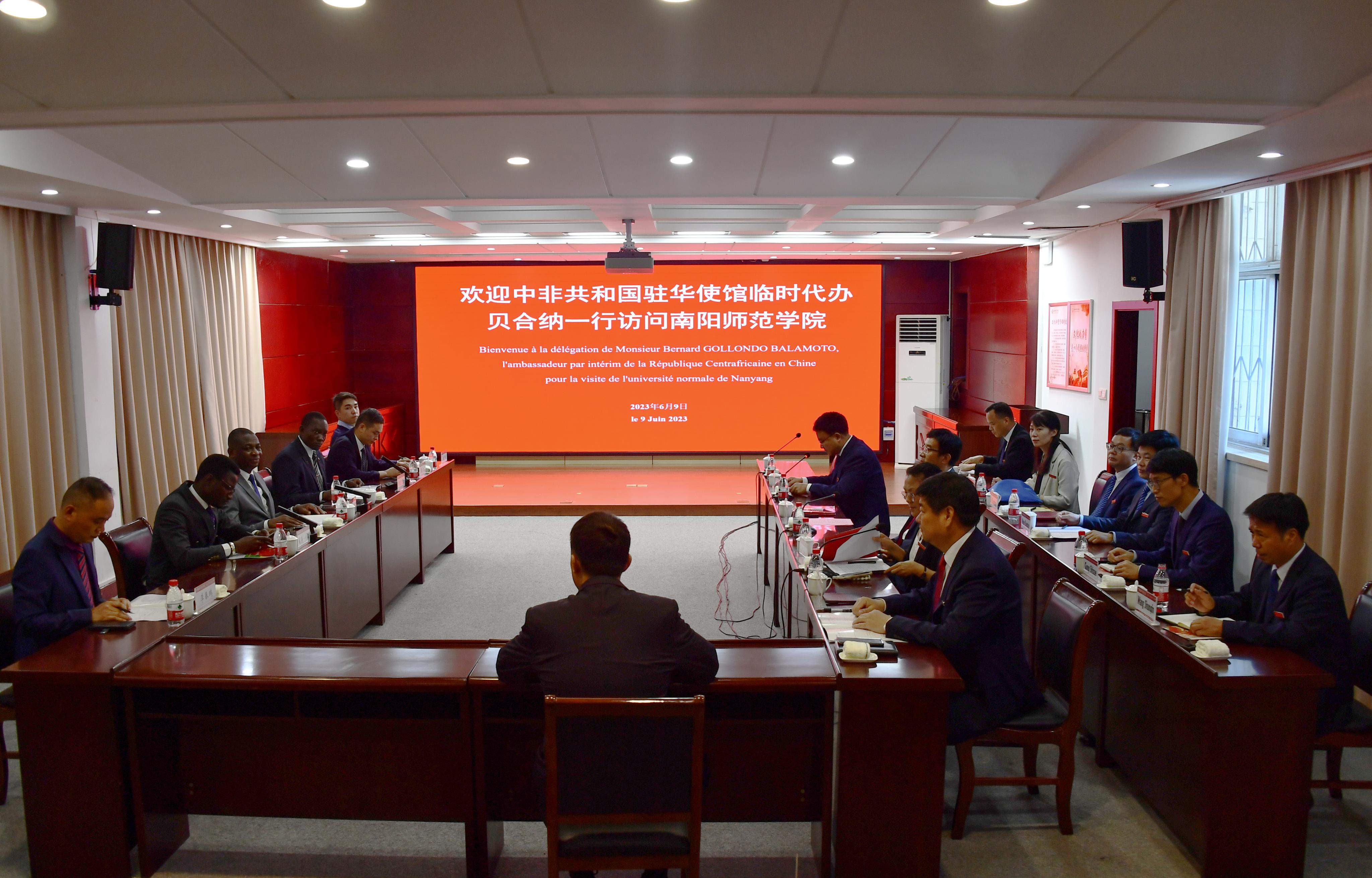 6月9日上午,中非共和国驻华大使馆临时代办贝合纳一行访问新葡萄官网。见面会在办公大楼一楼东会议室召开。南阳市人民对外友好协会秘书长李春鹏、南阳市委外办外事管理科主任科员陈梦羽,新葡萄官网校长张宝锋、副校长刘红林出席会议。教务处、国际交...