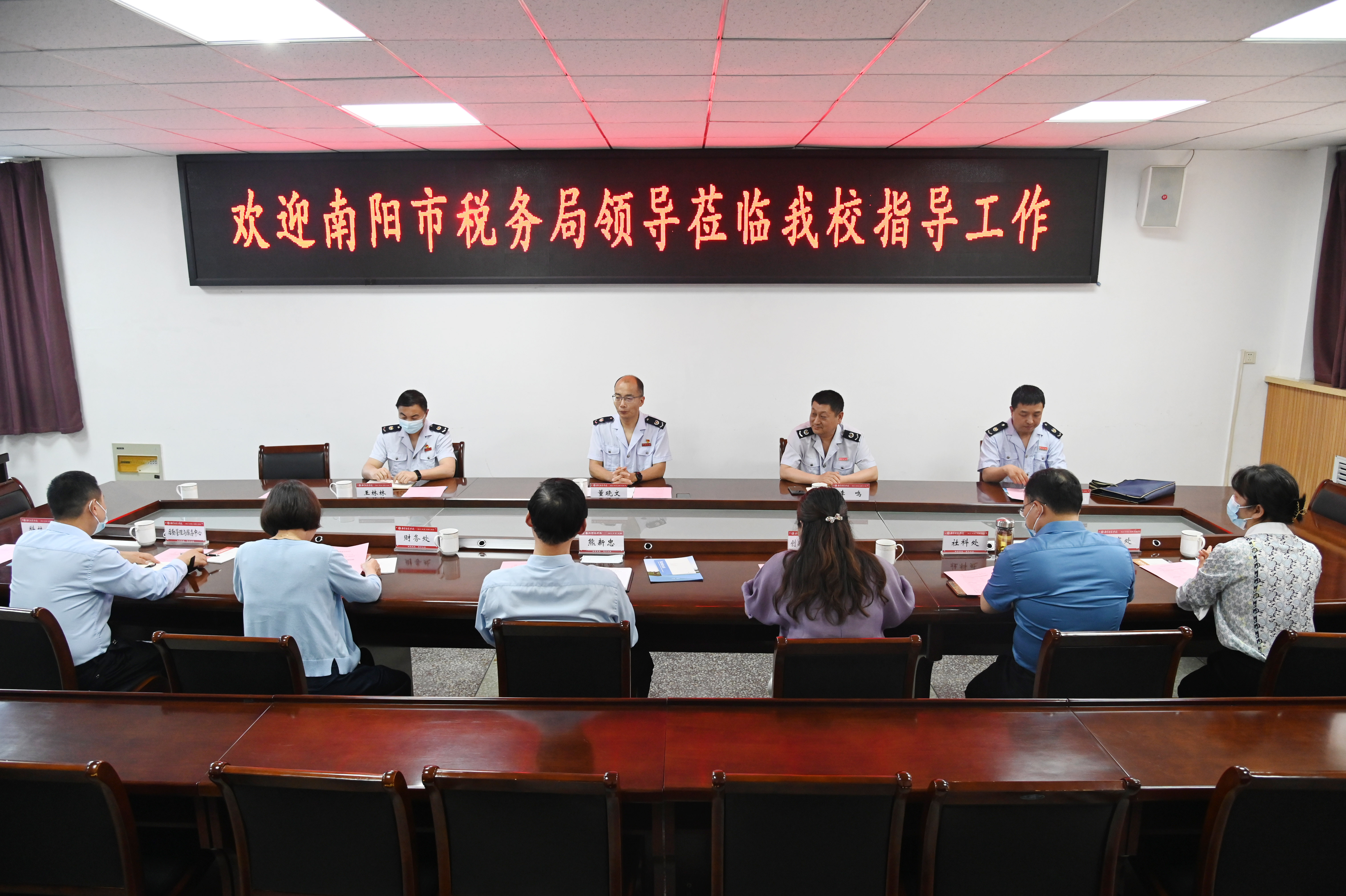 1. 座谈会现场2. 座谈会现场本网讯(王静/文 张坤毅/图)5月25日上午,南阳市卧龙区税务局副局长董晓文一行来校调研。副校长熊新忠出席座谈会。财务处、社科处、科技处、人事处、创新创业学院、后勤管理与服务中心负责人参加。熊新忠对税务局工作人员的到来表示热烈欢迎,他介绍了新葡萄官网建设发展情况,并感谢卧龙区税务局在个人所得税汇算清缴、高层次人才税务服务等方面为学校提供的帮助。他讲到,全校教职工纳税意识不断提高,...