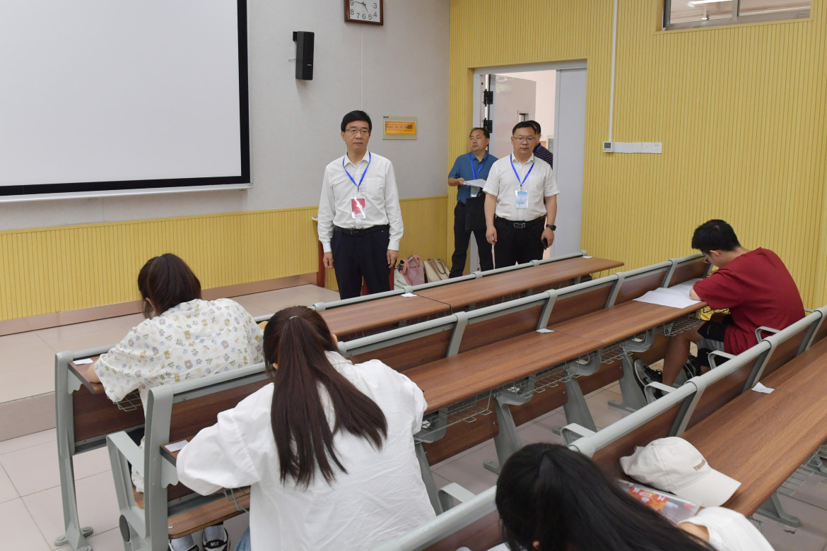 为强化期末考试组织管理,严肃考风考纪,6月20日下午,校长张宝锋在院长办公室、教务处和校团委等单位负责同志的陪同下先后到逸夫楼、张衡楼和实训楼等教学楼考场进行巡视,指导期末考试工作。张宝锋一行到教育科学学院、经济与管理学院、物理与电子工程学院、计算机科学与技术学院和土木建筑工程学院等学院考场进行巡考,并与相关学院负责同志交流,询问了考试安排、考场分布等考...