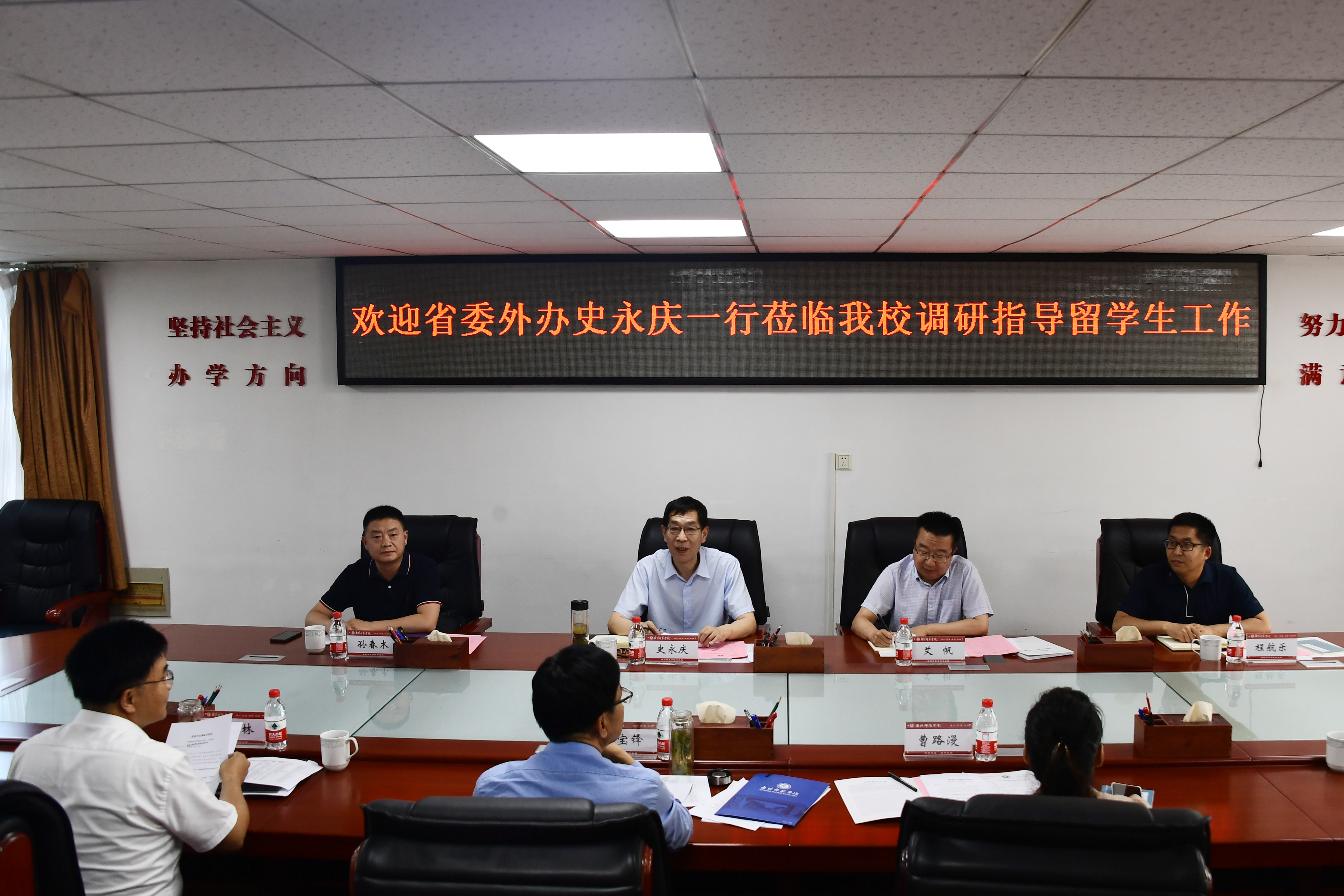 6月26日,省委外办副主任史永庆一行4人来校开展来华留学生工作调研。校长张宝锋、副校长刘红林出席调研座谈会。相关单位负责同志参加。座谈会由刘红林主持。刘红林代表学校对调研组各位专家的到来表示欢迎,向省委外办长期以来对学校的关心、帮助和支持表示衷心感谢。张宝锋介绍了新葡萄官网基本情况、国际交流与合作现状和来华留学生工作开展情况。从国际化办学条件、来华留学生培养...