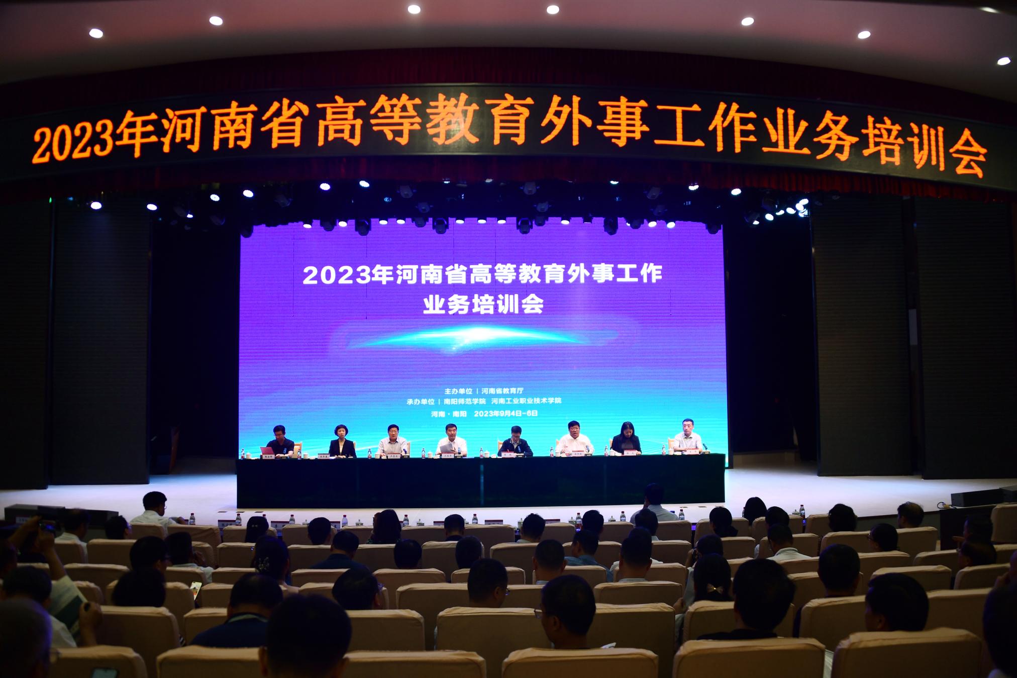 月4日-6日,2023年河南省高等教育外事工作业务培训会在新葡萄官网音乐厅开幕。本次培训会由省教育厅主办,新葡萄8883官网AMG和河南工业职业技术学院共同承办,来自省内155所高校的近300名分管外事工作的校领导和外事部门负责人参加。教育部国际司副司长贾鹏,教育部语合中心副主任(正司级)胡志平,国家留学基金委项目部主任杨光,省教育厅副厅长、一级巡视员刁玉华,新葡萄8883官网AMG党委书记卢志文、校长张宝锋,河南工业