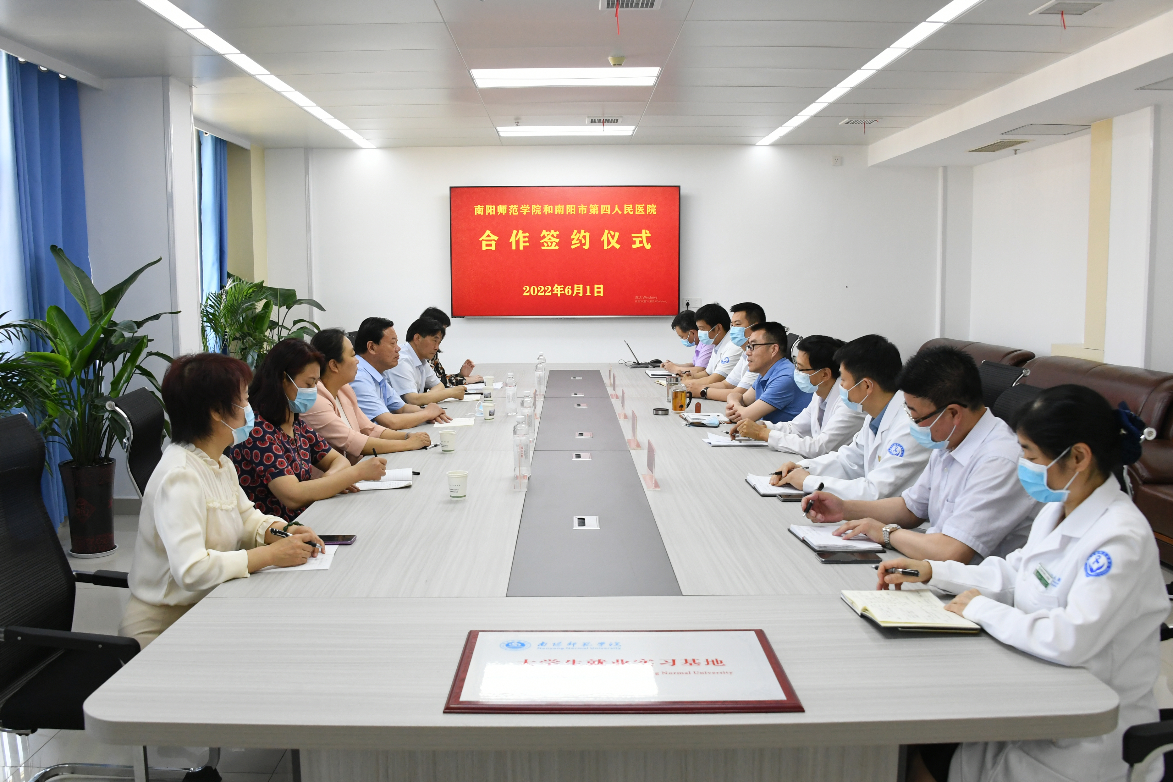 1.座谈会现场2.授牌本网讯(王晓红/文 李欣然/图)6月1日上午,新葡萄官网与南阳市第四人民医院合作签约仪式在南阳市第四人民医院举行。新葡萄官网党委副书记谢冰松,创新创业学院、校企合作办公室、心理健康教育与咨询中心负责人及第四人民医院班子成员参加。签约仪式由南阳市第四人民医院党支部书记邱亚峰主持。第四人民医院院长孟小波对第四人民医院近年来的发展情况做了简单介绍。谢冰松介绍了新葡萄官网近年来的发展情况,强调了新葡萄8883官网AMG...