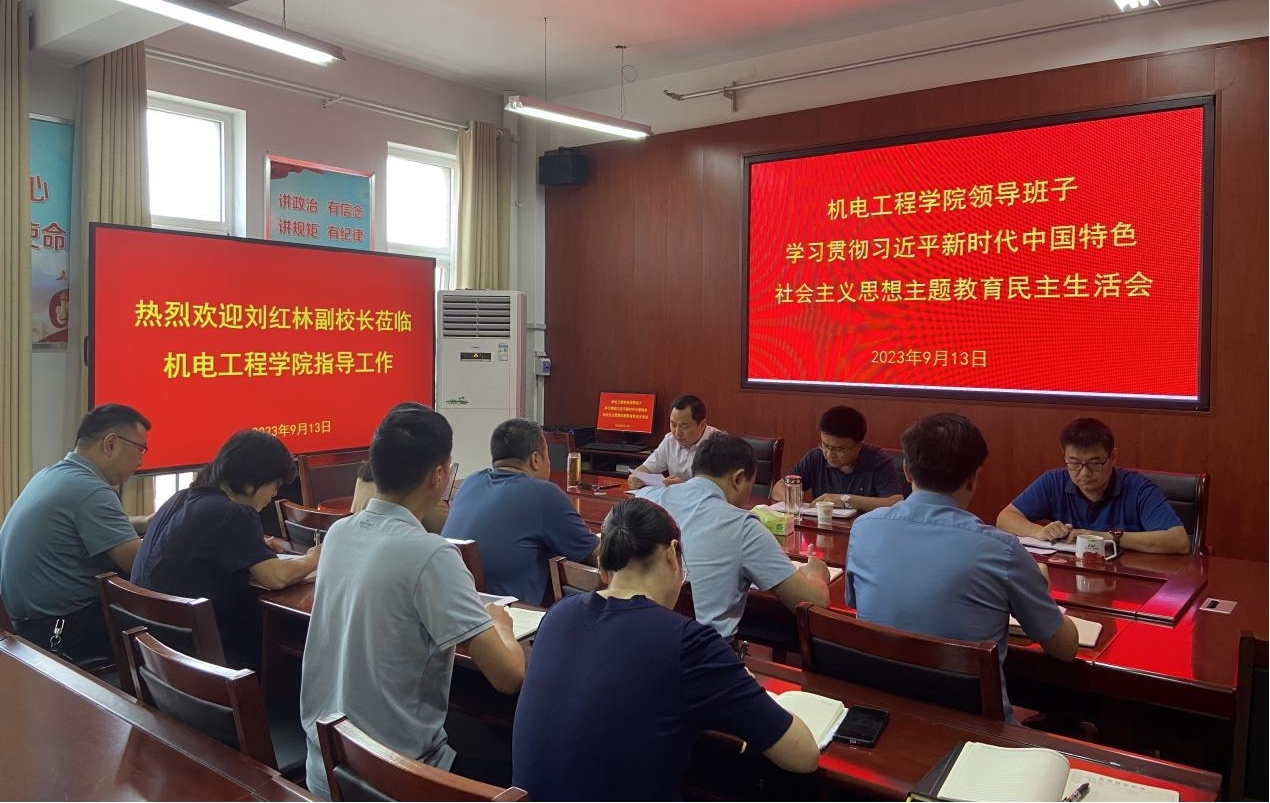 会议现场本网讯(通讯员 陈晓阳 图/文)9月13日上午,机电工程学院在实训楼1516会议室召开学习贯彻习近平新时代中国特色社会主义思想主题教育专题民主生活会。副校长刘红林出席,该院全体领导班子成员及科级干部参加,会议由机电工程学院党委书记冷元峰主持。机电工程学院聚焦会议主题,会前认真开展自学、开展谈心谈话、广泛征求意见,结合思想和工作实际,从理论学习、政治素养、能力本领、担当作为、工作作风、廉洁自律等方...