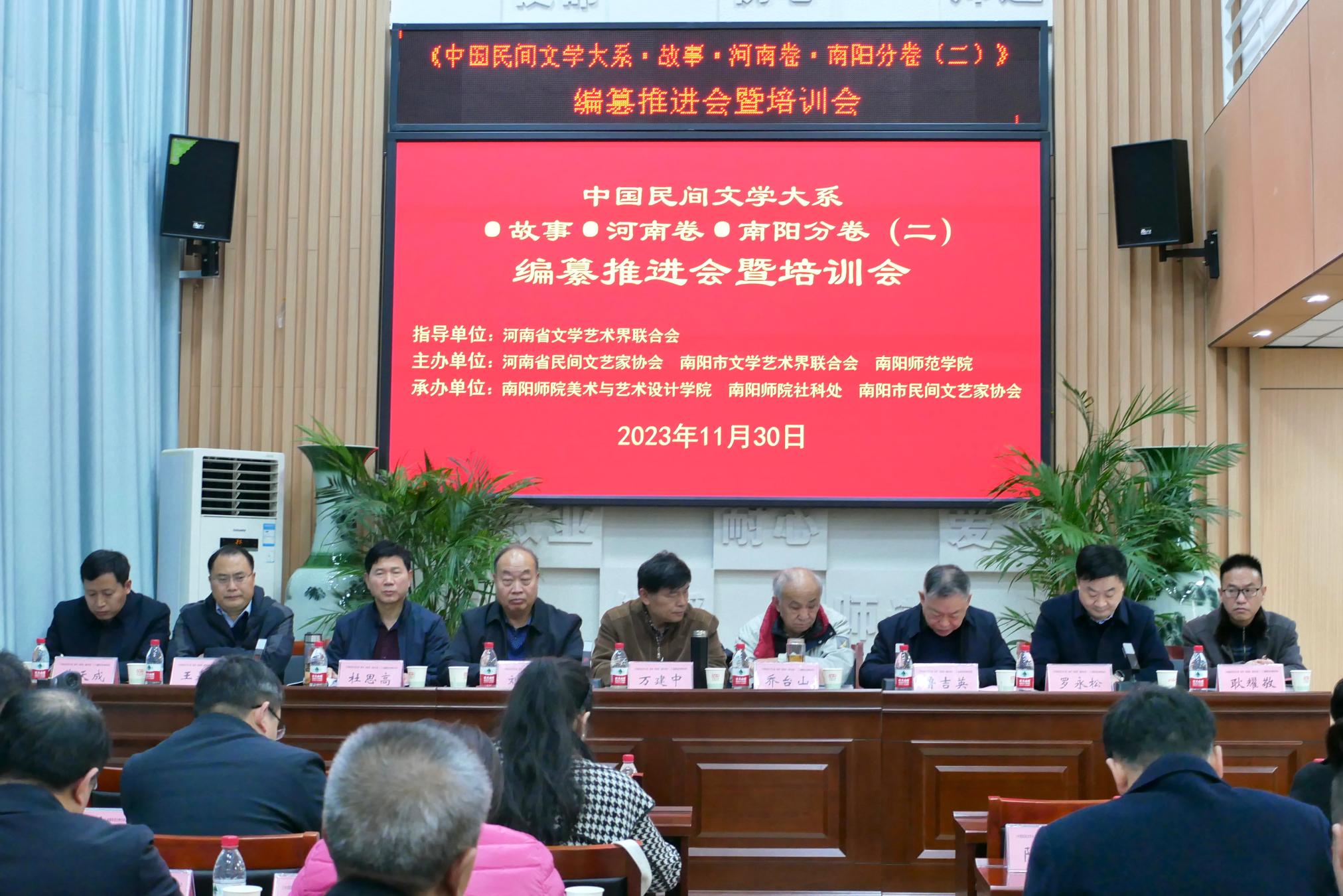 11 月 30 日,由新葡萄官网社科处和美术与艺术设计学院承办的《中国民间文学大系·故事·河南卷·南阳分卷(二)》编纂推进会暨培训会在新葡萄官网举行。中国民间文艺家协会副主席、北京师范大学博士生导师万建中,中国⺠间⽂学⼤系河南卷故事专家组组长乔台⼭,省⺠协秘书⻓刘炳强,南阳市文联党组书记、主席鲁吉英,市文联党组成员、副主席杜思高,新葡萄官网副校长罗永松,社科处、美术与艺术设计学院领导负责同志,...