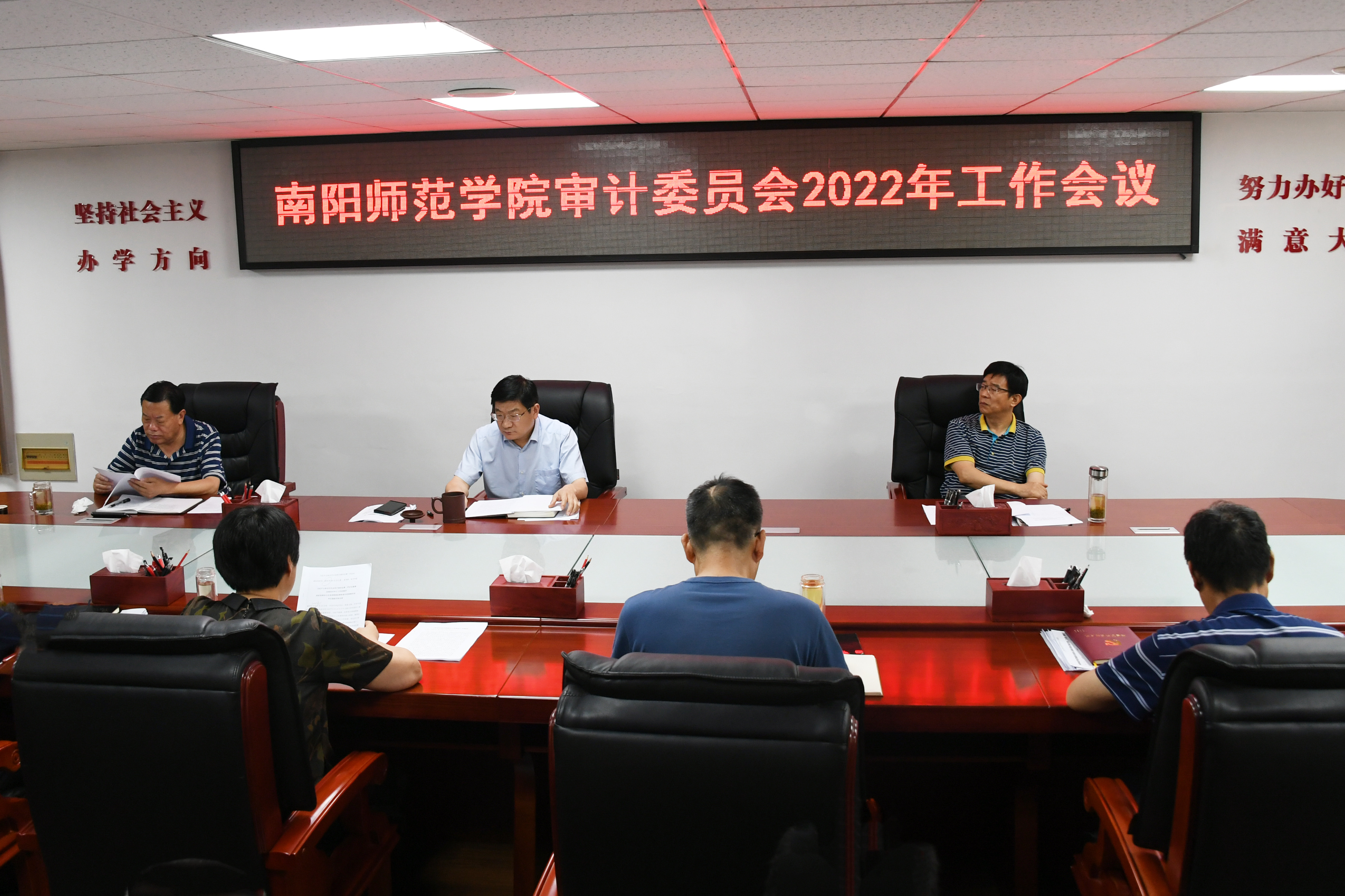 1.会议现场2.会议现场本网讯(张辉/文 王基仁/图)6月22日,新葡萄官网在办公大楼三楼会议室召开审计委员会2022年工作会议。校党委书记、审计委员会主任卢志文,校长、审计委员会主任张宝锋,校党委副书记、审计委员会副主任谢冰松,副校长、审计委员会副主任孟静雅,校纪委书记、监察专员、审计委员会副主任于继武,副校长、审计委员会副主任周旗、朱其春、刘红林、熊新忠出席会议。全体审计委员会委员参会。会议由张宝锋主持。会上,...