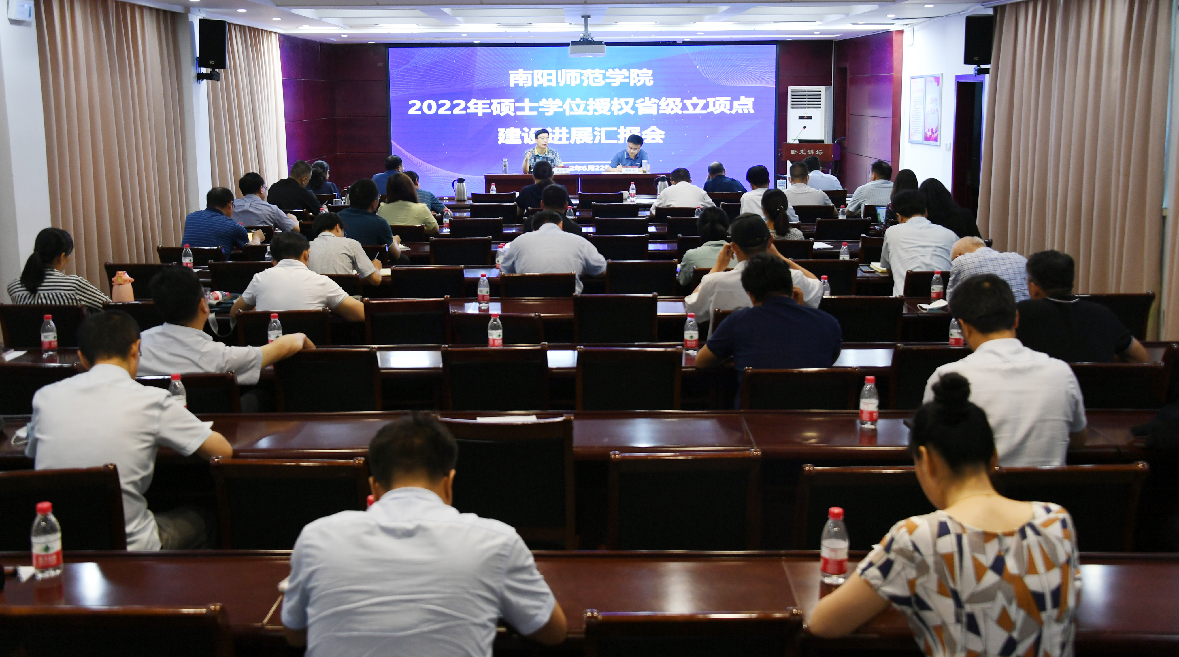 1.会议现场2.校长张宝锋讲话3.副校长刘红林讲话4.一级学科立项点相关负责人汇报5.专业类别立项点相关负责人汇报本网讯(刘存杰/文 王基仁/图)6月22日上午,新葡萄官网在办公大楼一楼东会议室召开了2022年硕士学位授权立项点建设进展汇报会。校长张宝锋,副校长刘红林,教务处、社科处、科技处、研究生处相关职能部门负责人,各省级立项点牵头(参建)单位院长、副院长和科研专干参加会议。会议由刘红林主持。张宝锋肯定了新葡萄官网硕士学位...