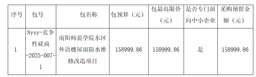 1、项目编号:Nysy-竞争性磋商-2025-007