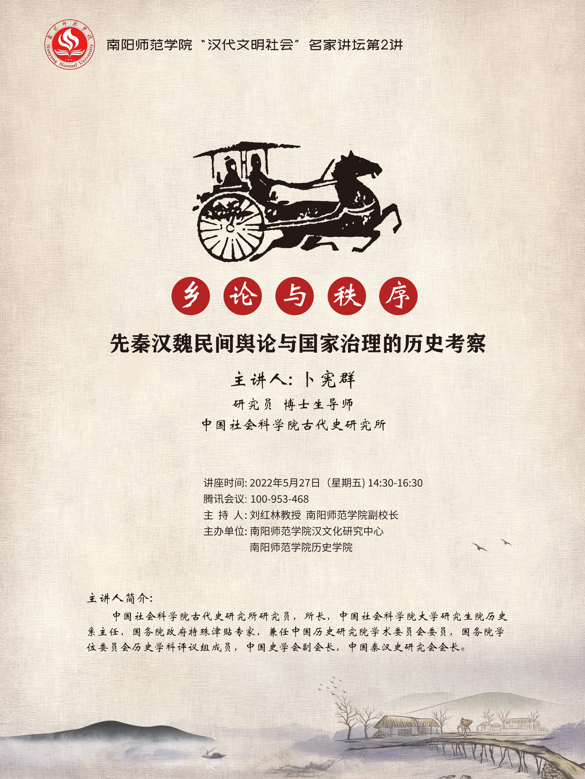 报告题目:乡论与秩序:先秦汉魏民间舆论与国家治理的历史考察