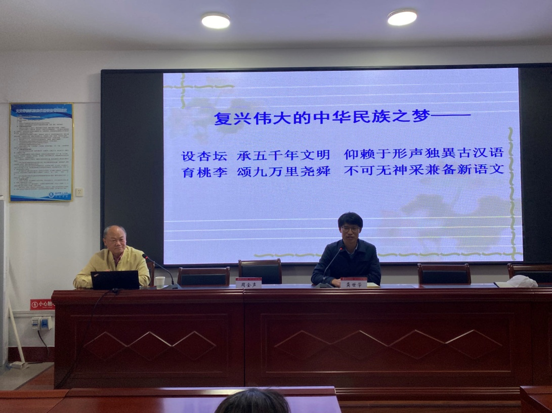 周金声教授以中西语言对比的角度切入,从世界上最古老的文字、汉字的起源、汉字的造字法、字形字体的变化发展、汉字文化特性及其影响、生生不息的文化魅力等方面展开,认为汉字是中国文化的基因、传承文明的载体。周金声教授的报告例证丰富、形象生动,与现实生活相契合,与会师生纷纷表示深受启发,学术视野获得了开拓。