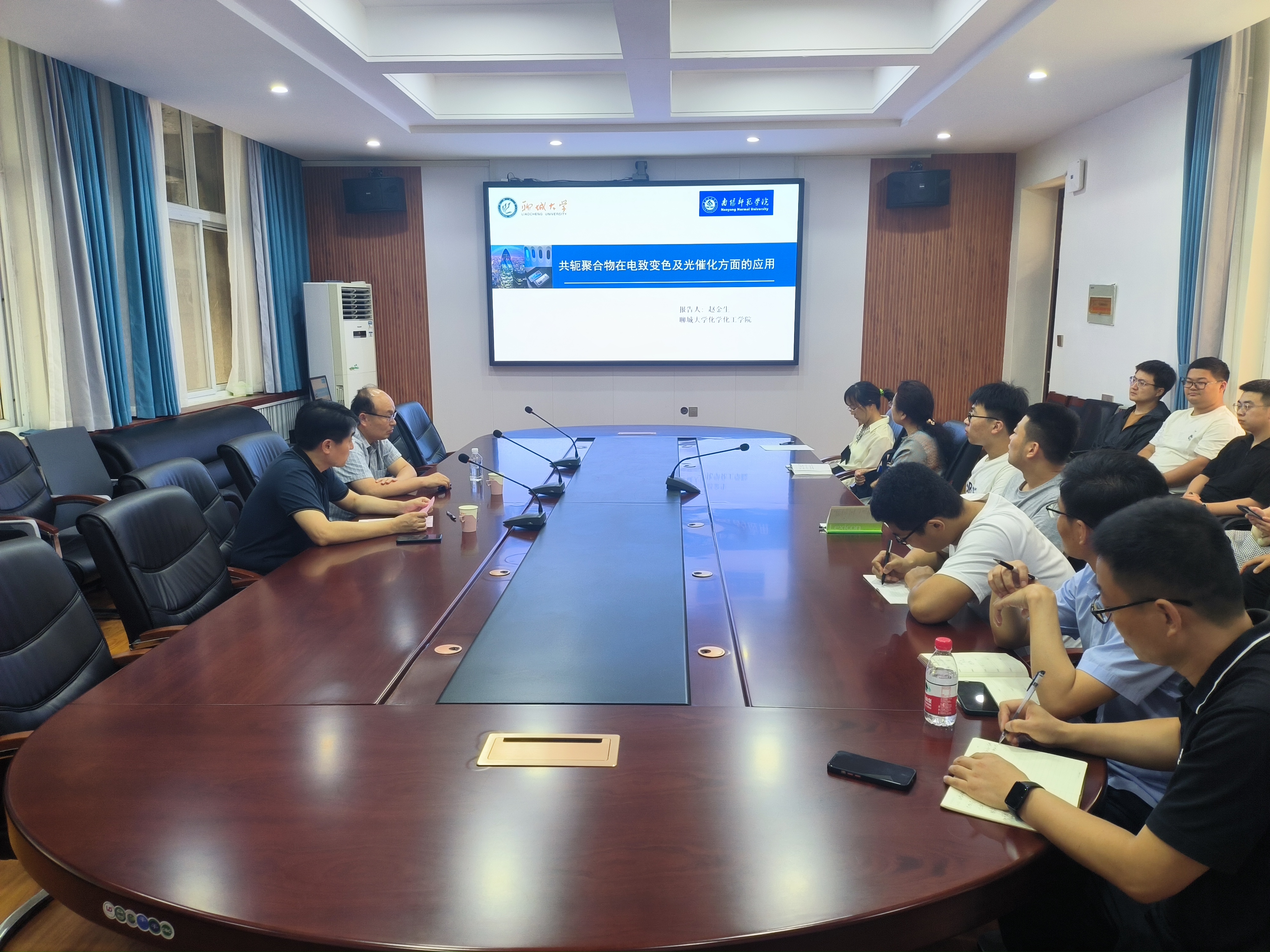 赵金生教授实现介绍了共轭聚合物在电致变色和光催化产氢方面的研究背景,然后介绍了课题组近年来合成的“覆盖可见光区域的具有高着色效率的D-A型”、“基于大面积稠环的具有三色转换的D-A型”等系列电致变色聚合物,“共价三嗪骨架@Au@TiO2三元Z型异质结”、“氮原子精准取代共价三嗪框架”等光催化材料及产氢性能。最后,赵金生教授对师生提出的问题一一给予耐心、详细解答。