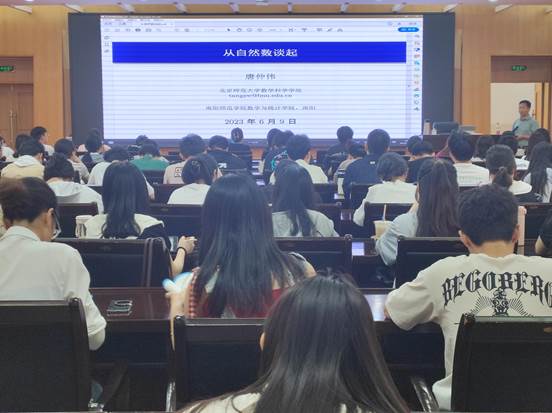 本网讯(通讯员 虎大力 张露涵/文 王怡乐/图)6月9日上午,应数学与统计学院邀请,北京师范大学唐仲伟教授在科技楼三楼报告厅为新葡萄官网师生作了题为《从自然数谈起——数学分析中实数的理论与应用》的专题报告。报告由数学与统计学院副院长陈庆主持,20级、21级部分师生共同聆听了报告会。