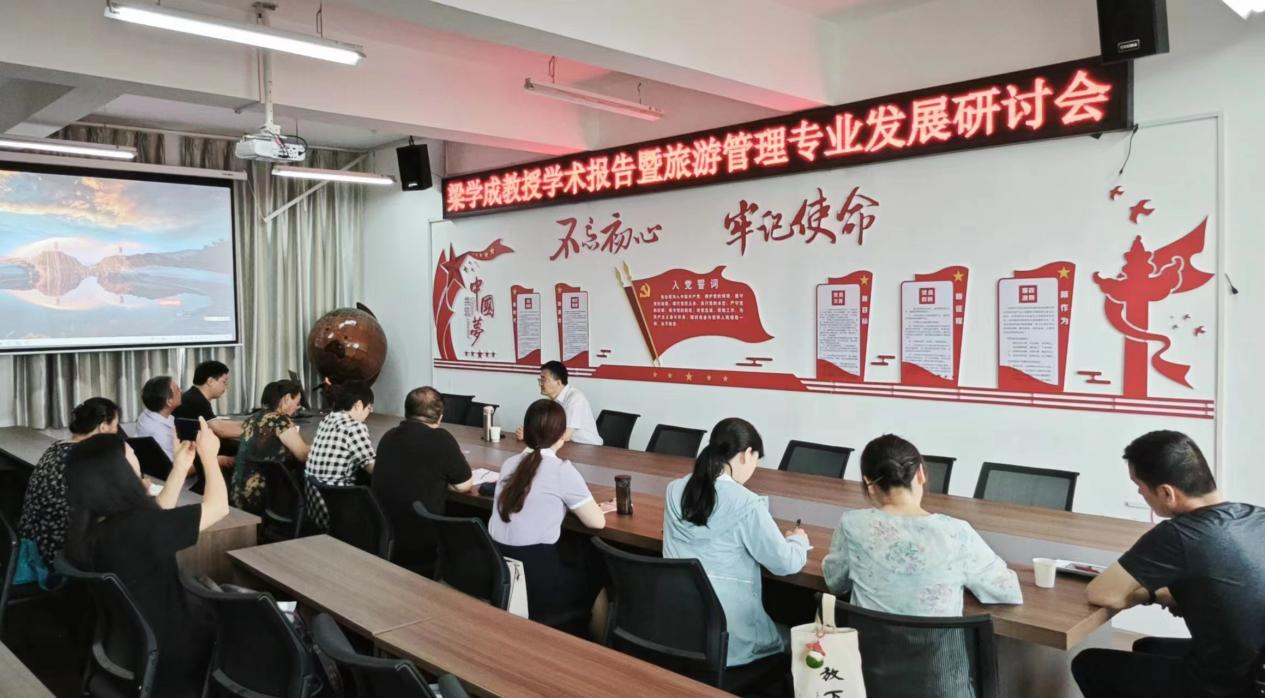 本网讯(陈水映/文 陈帅/图)7月2日上午,西北大学博士生导师梁学成教授应邀到新葡萄官网作题为《我国文旅融合发展的理论和实践探索》的学术报告。地理科学与旅游学院全体教师参加,报告会由该院副院长鲁丰先主持。
