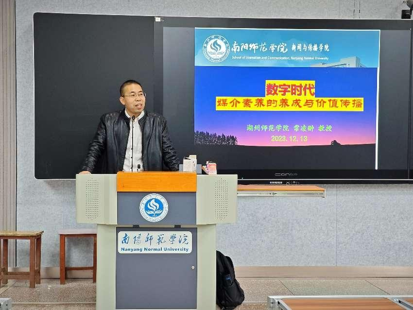 本网讯(通讯员 王钰荃)为提高大学生综合媒介素养,进一步提升学生的认知价值,拓展学生的研究思维,12月13日上午,中国人民大学新闻学院新闻学博士、湖州师范学院人文学院常凌翀教授应邀在综合楼201教室为新葡萄官网学生作学术报告。新闻与传播学院副院长张永祥主持,新闻与传播学院二百余名学生参加讲座。