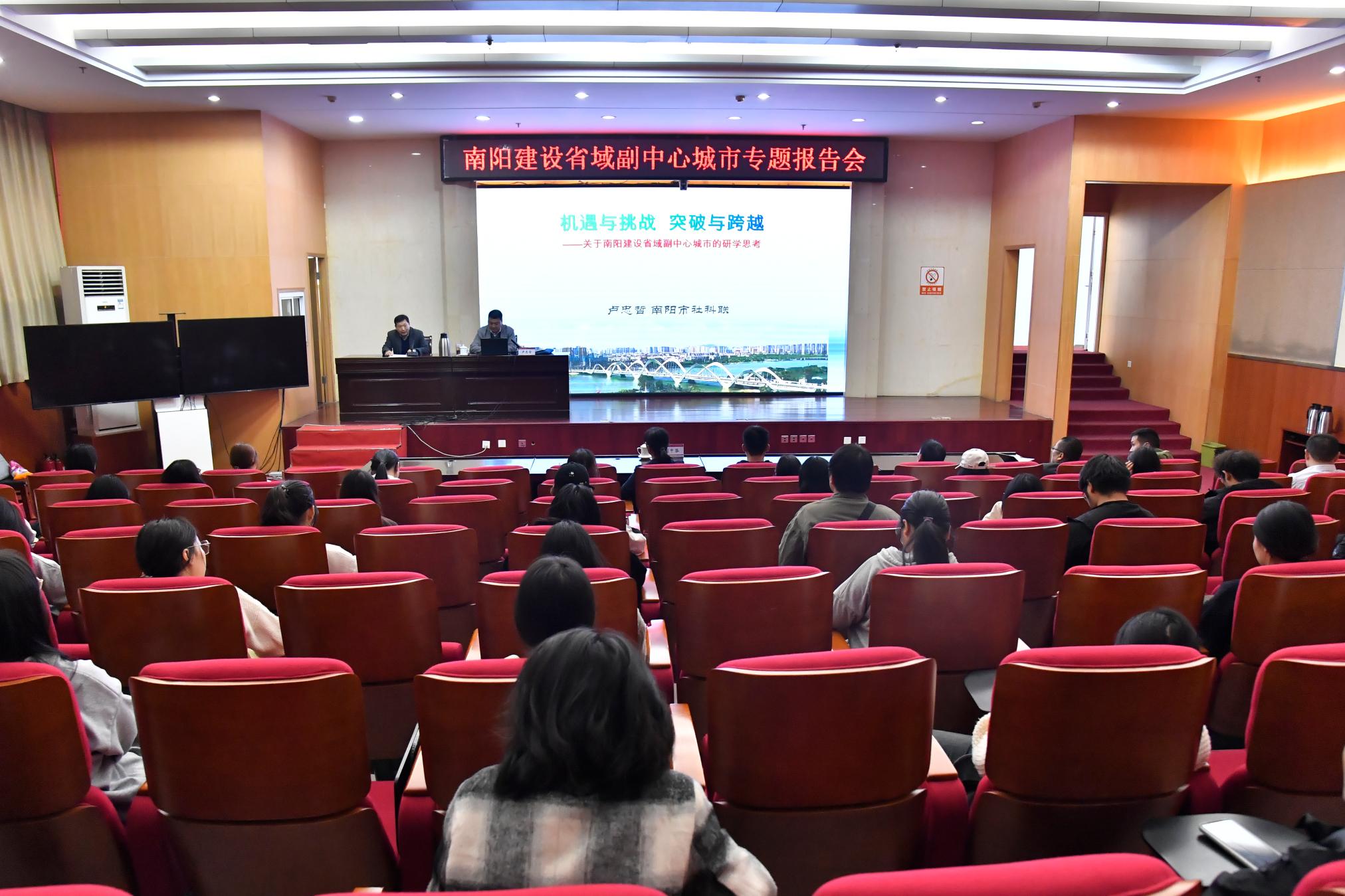 本网讯(通讯员 李旭)10月25日下午,应南阳发展战略研究院邀请,南阳市社科联副主席卢忠哲在图书馆1楼报告厅为新葡萄官网师生作题为《机遇与挑战突破与跨越——关于南阳建设河南省省域副中心城市的研学思考》的学术报告。南阳发展战略研究院和经济与管理学院部分师生参加报告会。报告会由南阳发展战略研究院院长王铁红主持。