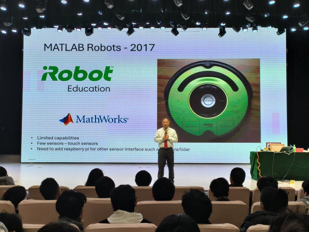 白利教授首先介绍了机器人技术的最新发展动态,随后重点解析了天普大学机器人控制课程的设计与构建过程。通过具体案例的细致讲解,全景展现了机器人技术从家用扫地机器人Roomba的初步应用到开源硬件驱动平台和人工智能小车的迭代演进。在交流环节中,白利教授耐心解答了师生们的疑问,在辨明问题的同时,就如何掌握该领域的核心技能指出了具体路径。白利教授还和与会师生就如何高效开展学术研究展开了深入交流,为我院科研工作提供了宝贵的建议。