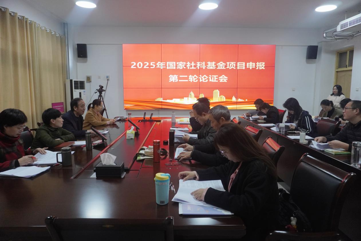 本网讯(通讯员 田煜)12月1日,文学院在逸夫楼S205会议室举行2025年度国家社科基金项目第二轮论证会。会议由文学院党委书记杨青新主持,文学院班子成员和相关教师参加。
