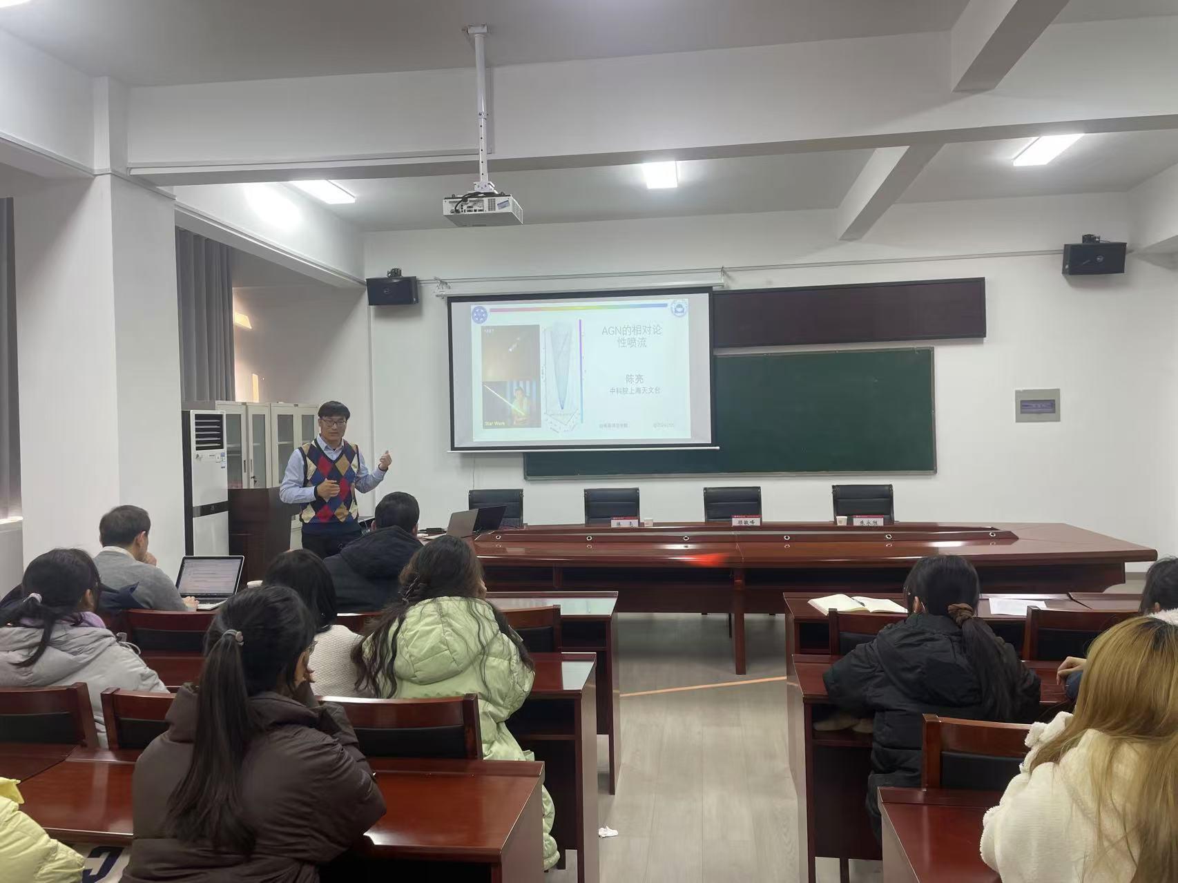 本网讯(通讯员 程晋炳 张君)应新葡萄官网物理与电子工程学院邀请,中国科学院上海天文台顾敏峰研究员、陈亮研究员于12月26日下午在科技楼241会议室,分别为新葡萄官网师生带来了题为“射电活动星系核辐射性质”、“活动星系核相对论性喷流物理”的精彩学术报告。本次报告会由物理与电子工程学院院长朱永胜主持,物电学院的教师代表、研究生以及部分本科生积极参与。