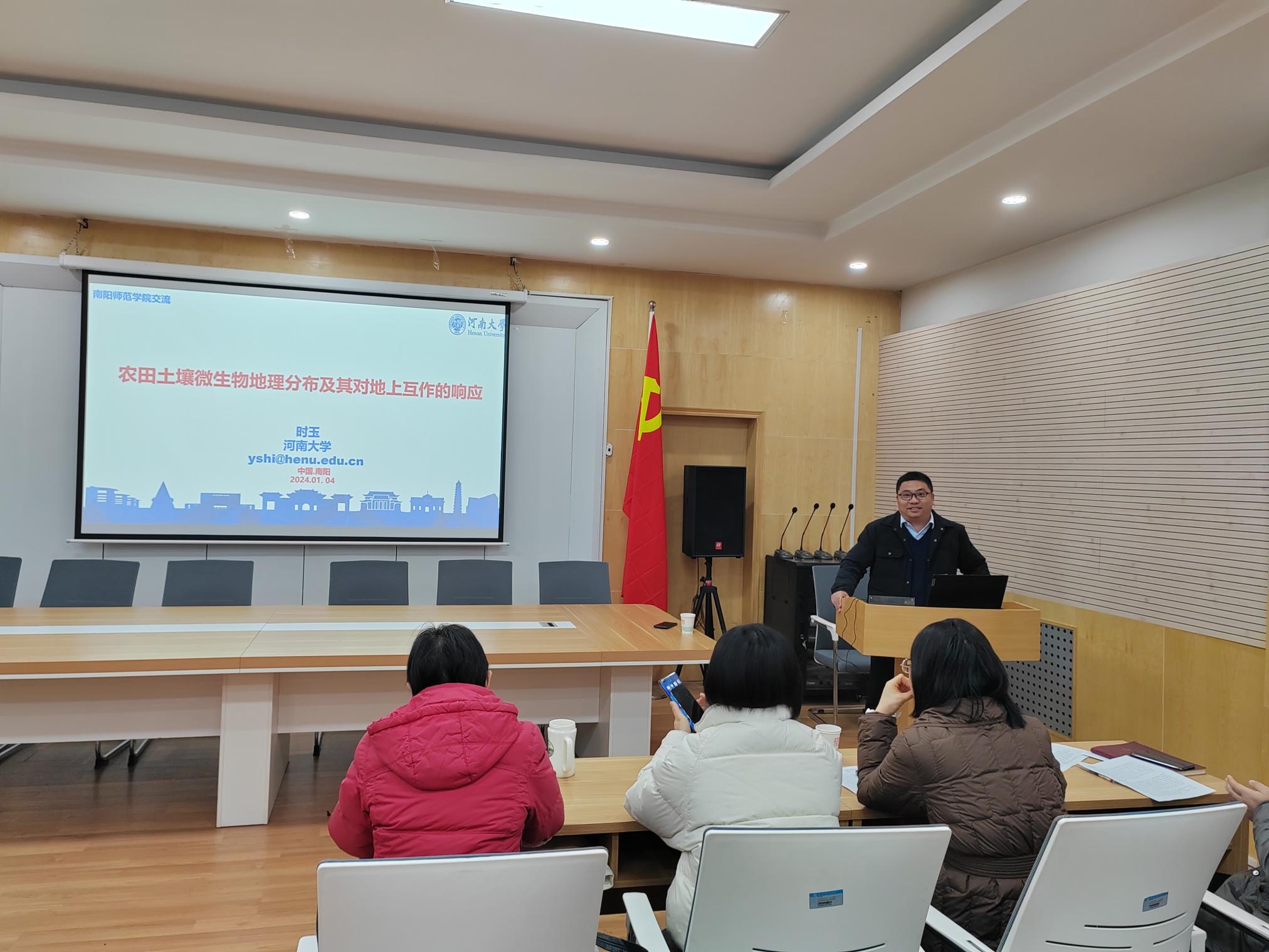 本网讯(通讯员 邓敏杰 张君)1月4日,应水资源与现代农业学院邀请,河南大学时玉教授于东区图书馆305会议室为新葡萄官网师生作流域生态安全讲座第14讲“农田土壤微生物地理分布及其对地上互作的响应”。本次讲座由水资源与现代农业学院副院长焦铸锦主持,来自科技处、水资源与现代农业学院、生命科学学院、以及南水北调中线水源区流域生态安全高等学校学科创新引智基地和南水北调中线水源区水安全河南省协同创新中心等单位的负责同志、教师代表以及部分研究生、本科生参与。