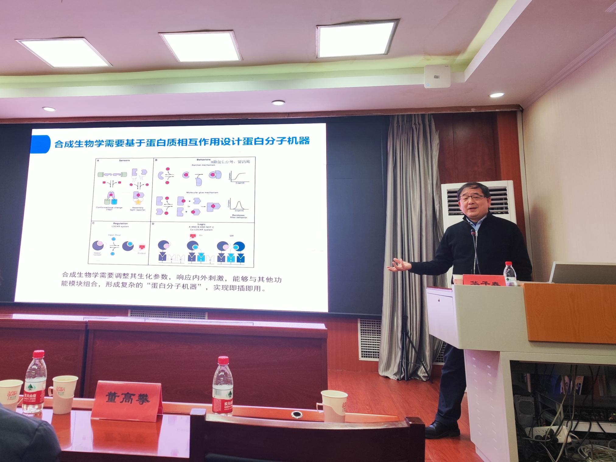 华子春教授通过生动且富有启发性的的案例故事,详细介绍了现代生物技术如何从最初的创意出发,快速实现应用转化,并催生出全新的产业和服务,以服务人类社会的发展。报告不仅展示了生物学学科的独特魅力,还描绘了一幅以合成生物学为代表的新一代生物技术的美好未来蓝图。随后,华教授结合自身丰富的科研经历,与在场师生深入探讨了智能活体微生物药物、多肽与蛋白质工程新药等领域的热点话题,并鼓励大家利用现代生物技术创造产业、改变生活、引领未来。此次报告会不仅增强了新葡萄官网师生对以合成生物学为代表的现代生物技术领域前沿进展的理解,更为新葡萄官网今后深入开展校企合作奠定了坚实的基础,提升了生命科学学院相关领域的科研水平,有效促进学校实现两大目标。
