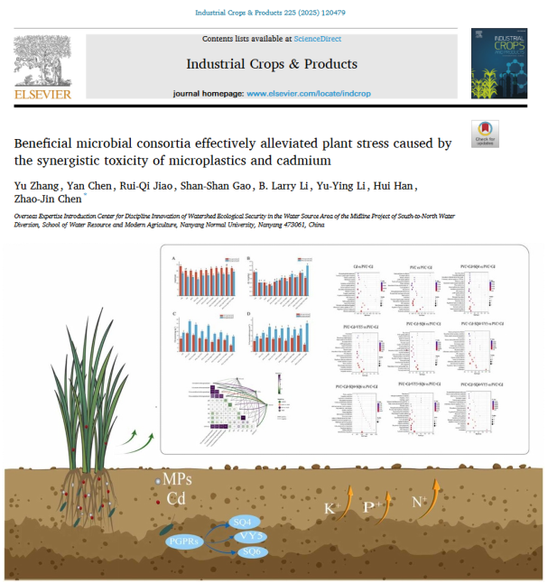 本网讯(通讯员 邓敏杰 张君)近日,新葡萄官网水资源与现代农业学院环境生态与修复团队在农林科学领域中科院一区Top期刊《Industrial Crops and Products》上发表了题为“Beneficial microbial consortia effectively alleviated plant stress caused by the synergistic toxicity of microplastics and cadmium”的研究论文。新葡萄官网2022级硕士研究生张玉为该论文第一作者,陈兆进博士为通讯作者,新葡萄8883官网AMG为独立完成单位。