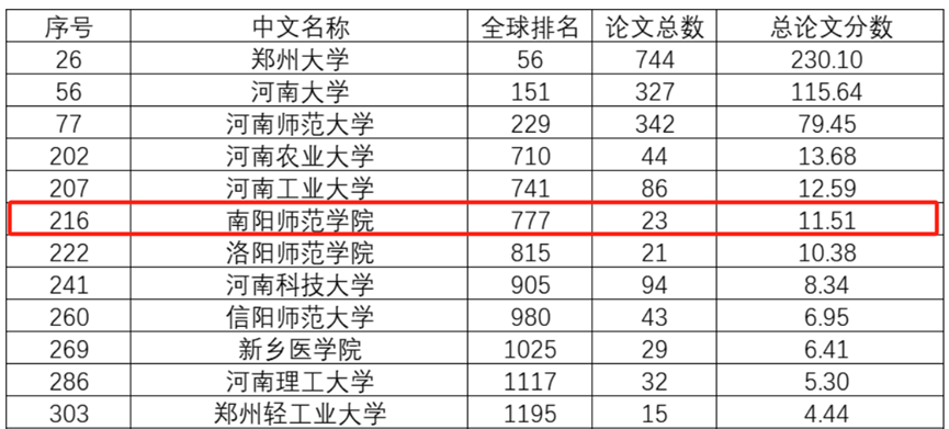 本网讯(通讯员 张浩 郑扬冰)近日,自然指数(Nature Index)官网更新了最新的自然指数排名(统计时间节点:2023.11.1-2024.10.31),河南省共有8所高校跻身全国前250名,新葡萄官网居全国第216名、河南省第6名,仅次于郑州大学、河南大学、河南师范大学、河南农业大学、河南工业大学,全国排名较去年有所提升,在省内学院类高校中排名最高,充分展示新葡萄官网在自然科学领域的影响力。