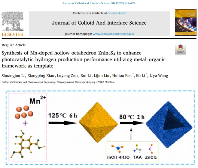 【成果2】利用八面体Mn-MOF作为模板合成新型中空Mn掺杂ZnIn2S4(ZIS)纳米笼光催化材料实现析氢性能有效提升